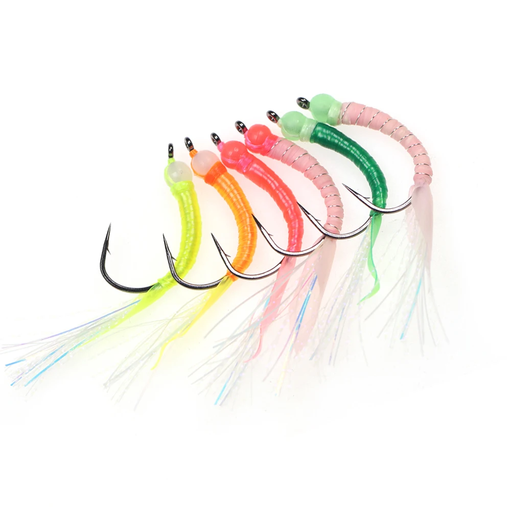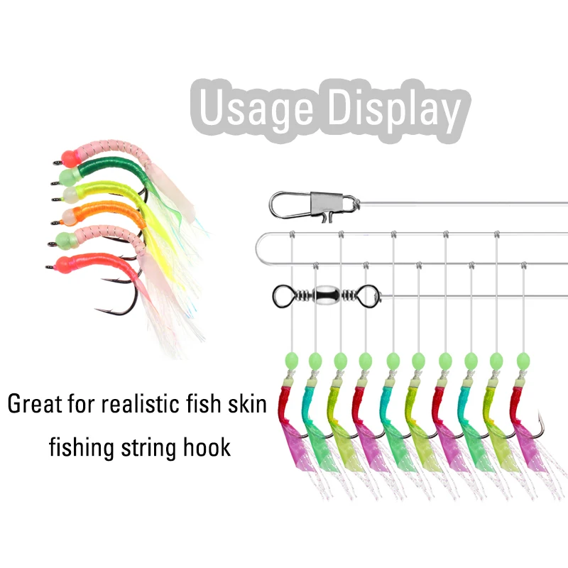 Wifreo-Anzuelo de Piel de Pescado Realista, Moscas de Gusano de Pesca para Aparejos Sabiki, Señuelos de Pesca Artificiales de Agua Salada, Aparejos de Pesca