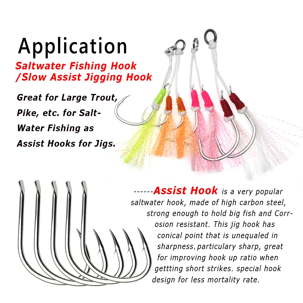Wifreo 10/anzuelos de pesca de agua salada enlatados, anzuelo de ayuda, anzuelos de pesca lenta de trucha de mar grande, anzuelos para Jigging de paso lento
