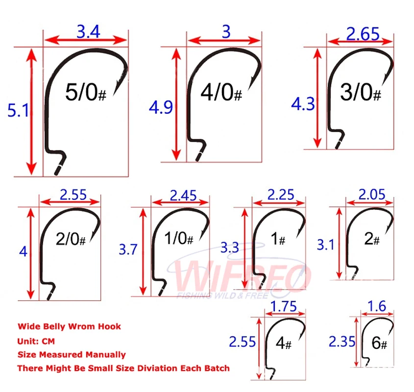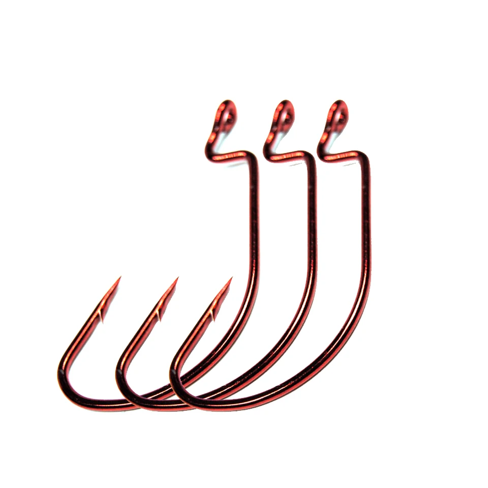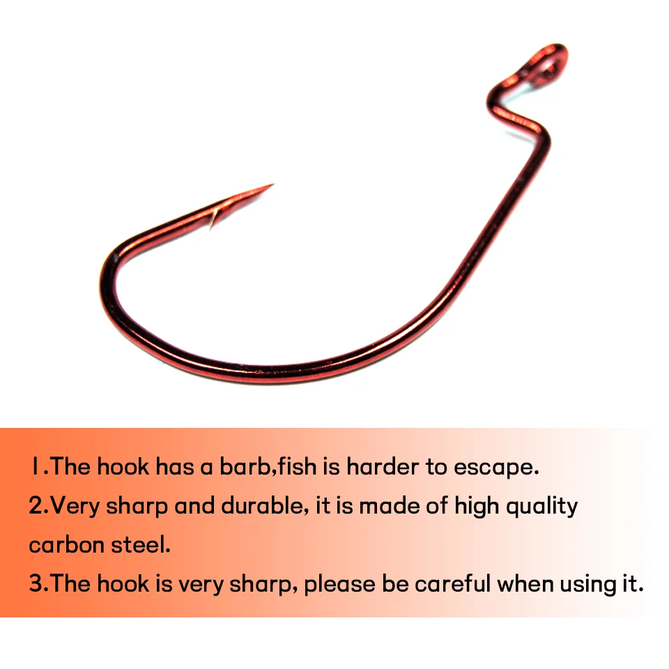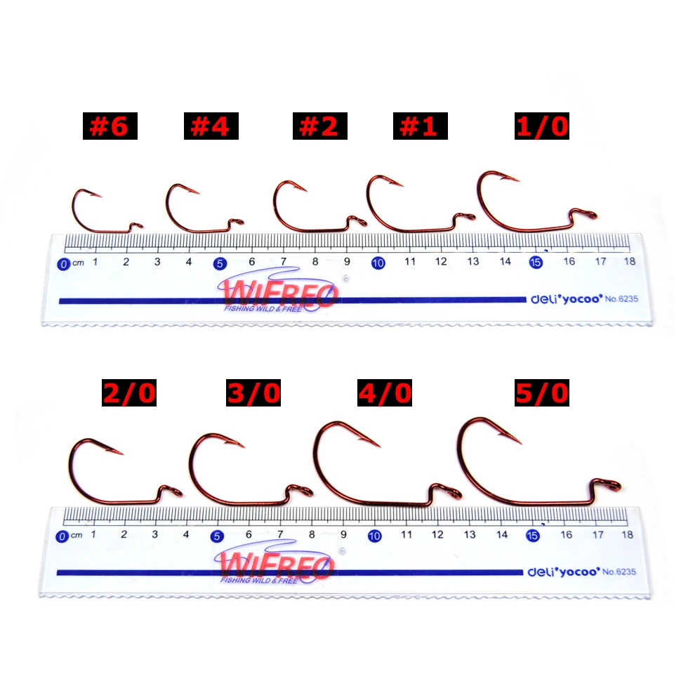 WIFREO 100 Uds anzuelo de gusano suave de pesca rojo Offset anzuelo de pesca de gran espacio para aparejo de Texas tamaño 6#-5/0 Aparejos de pesca al por mayor