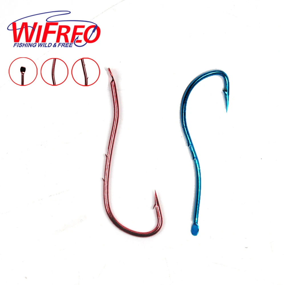 Wifreo 10 unids/pack rojo azul Baitholder Ryusen Hook Central Draft Fish Hook tamaño 15 16 17