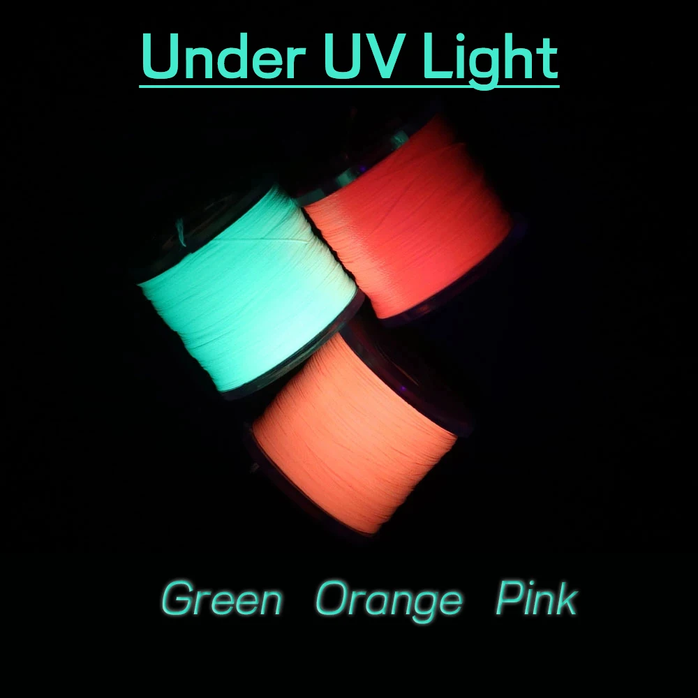 ★The UV Glow binding thread (UV orange, UV pink, UV green) more attractive for fish in deep and dark water, especially deep sea.