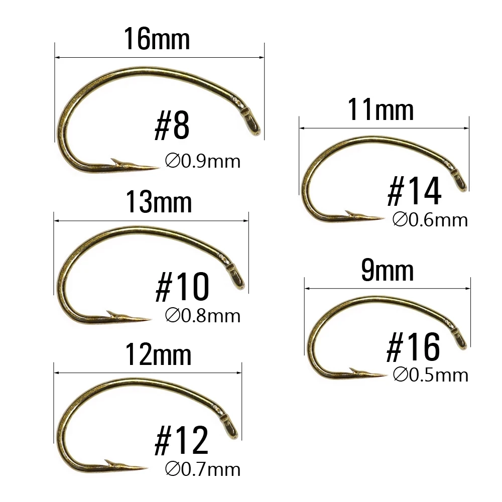 Anzuelos de ninfa de acero con alto contenido de carbono.