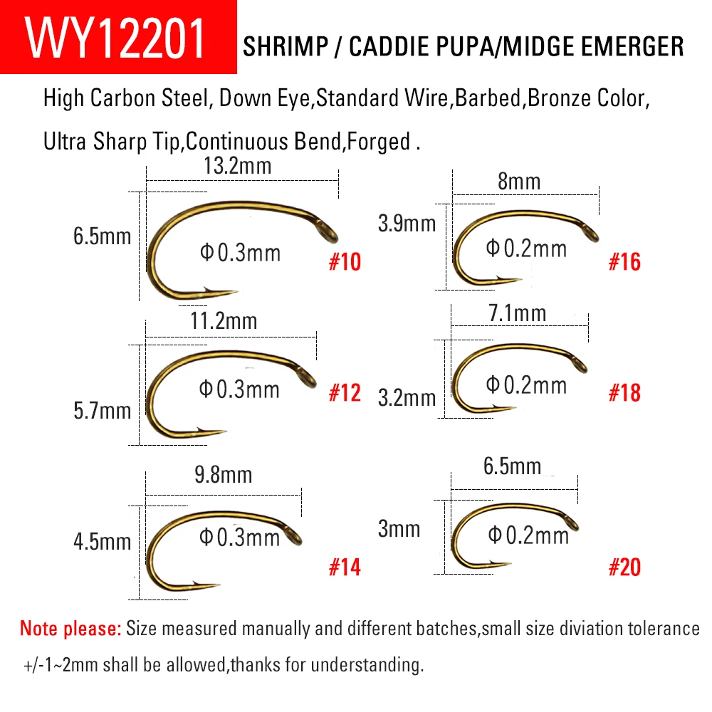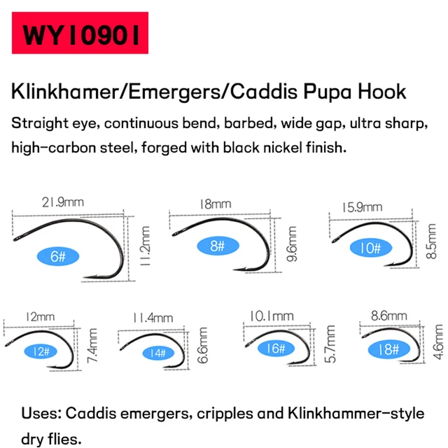 WIFREO-Anzuelos de pesca para atado de moscas, para pesca en seco, húmedo, plantilla y ninfa y camarones, pupa, streamer, acero de alto carbono