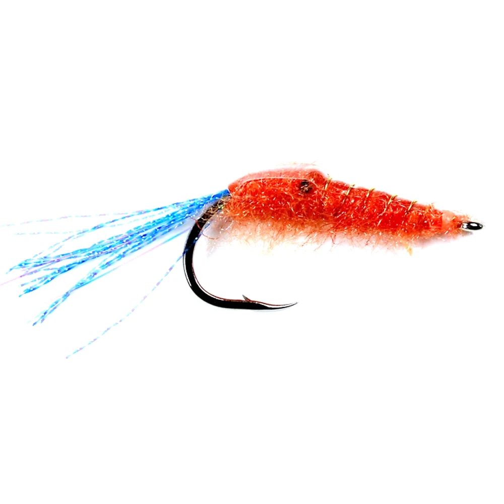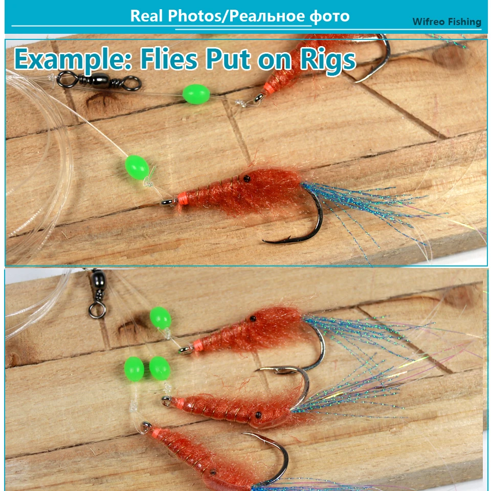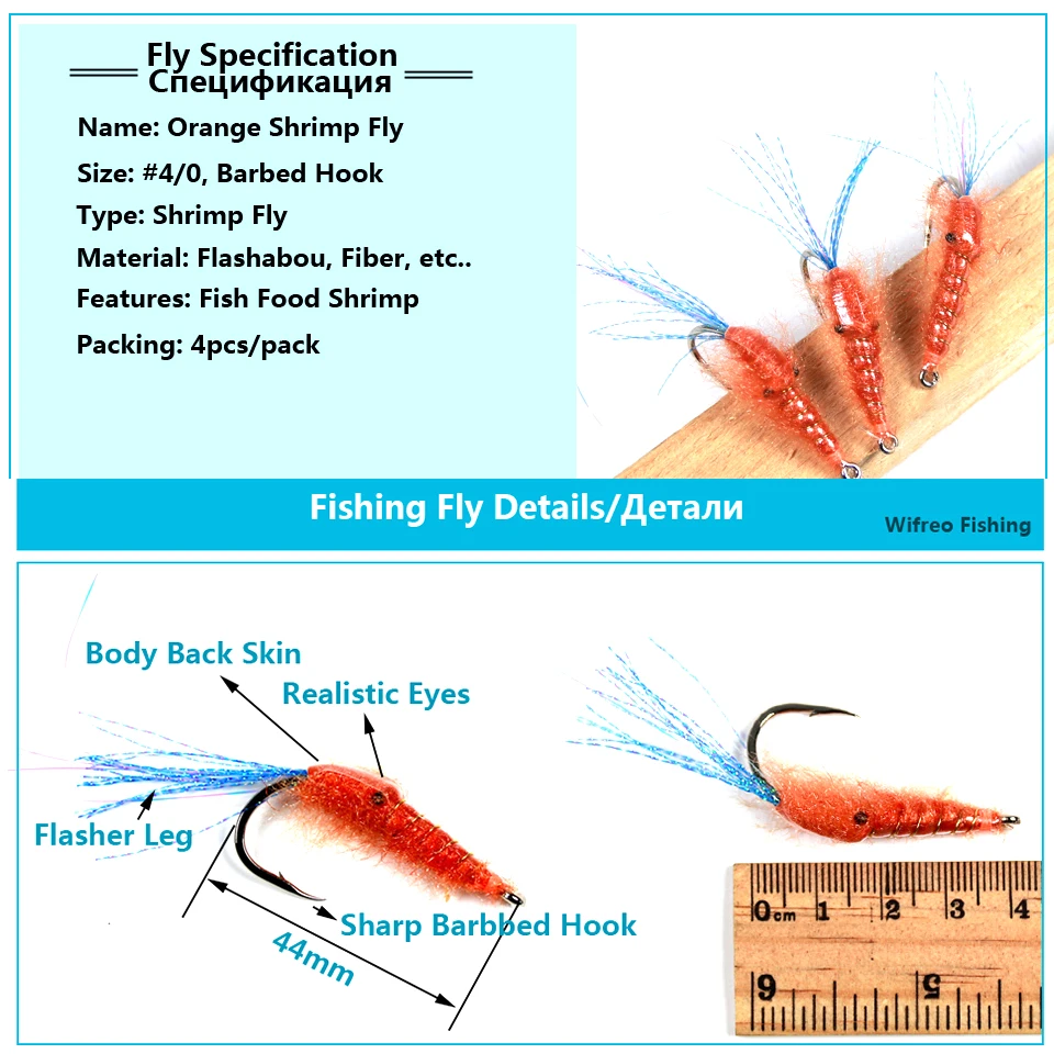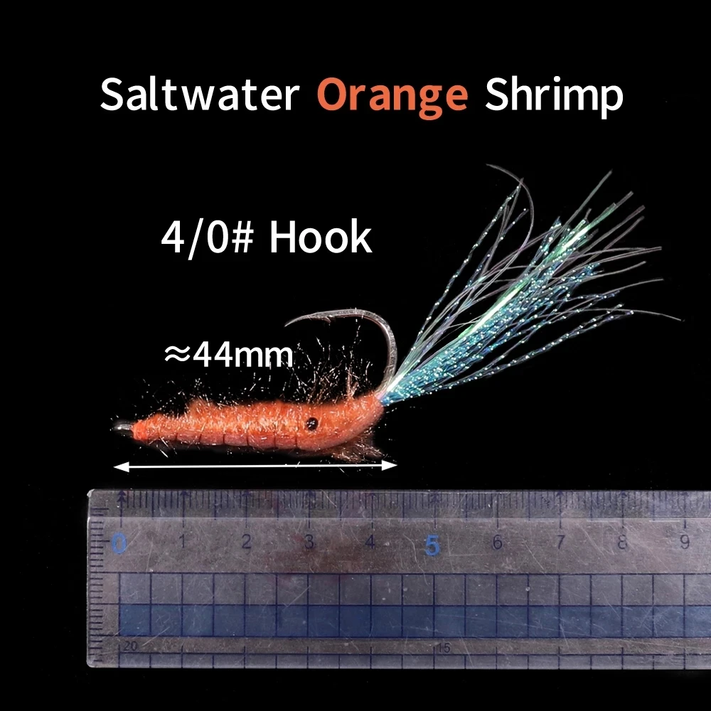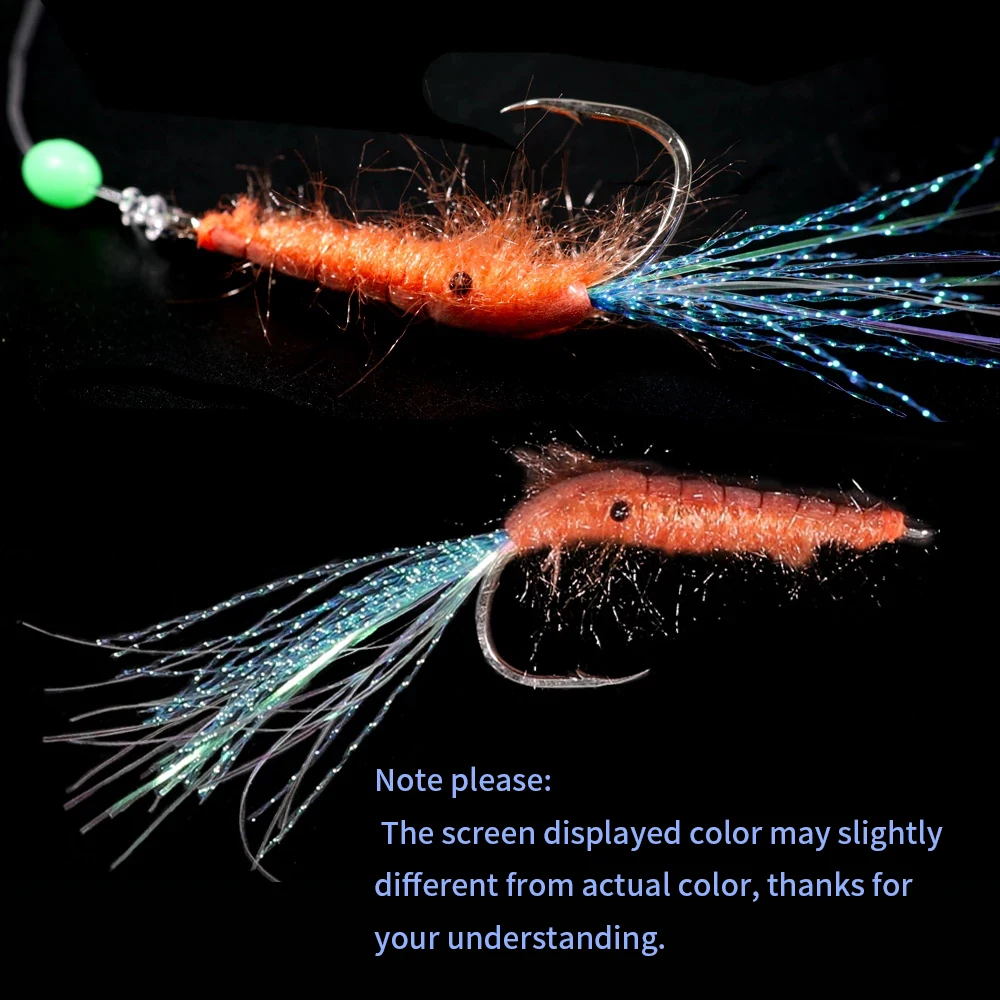 Wifreo 4 piezas 4/0 cebo de agua salada de camarón naranja pescado vuela con cola de perla cola de flashabú trucha Artificial mosca pesca ganchos perder camarones