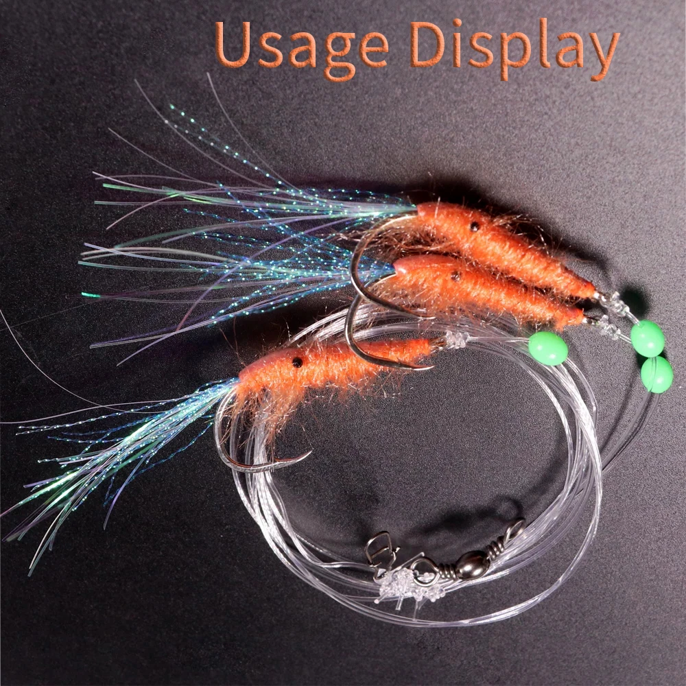 Aparejo de camarón de 3 moscas con clip giratorio y de plomo