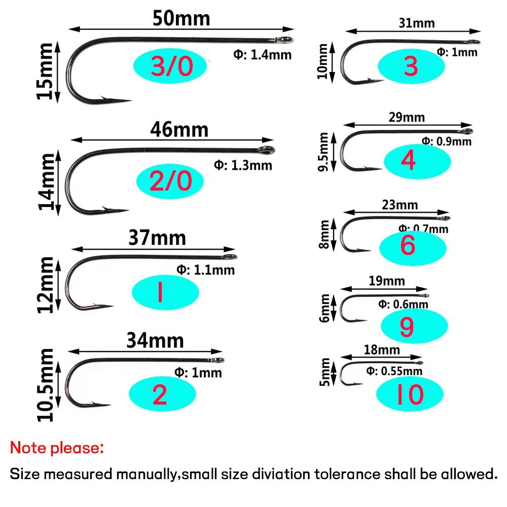Tamaño: #10, #9, #6, #4, #3, #2, #1, 2/0, 3/0 para la opción