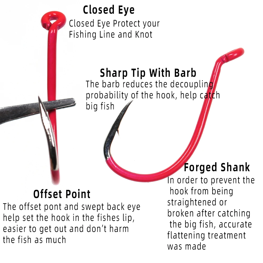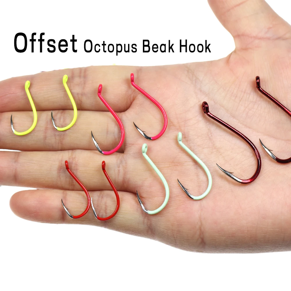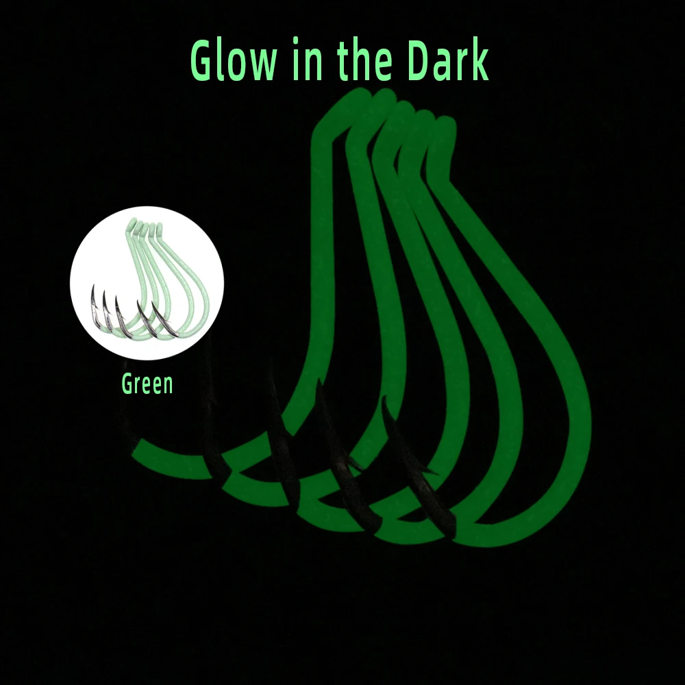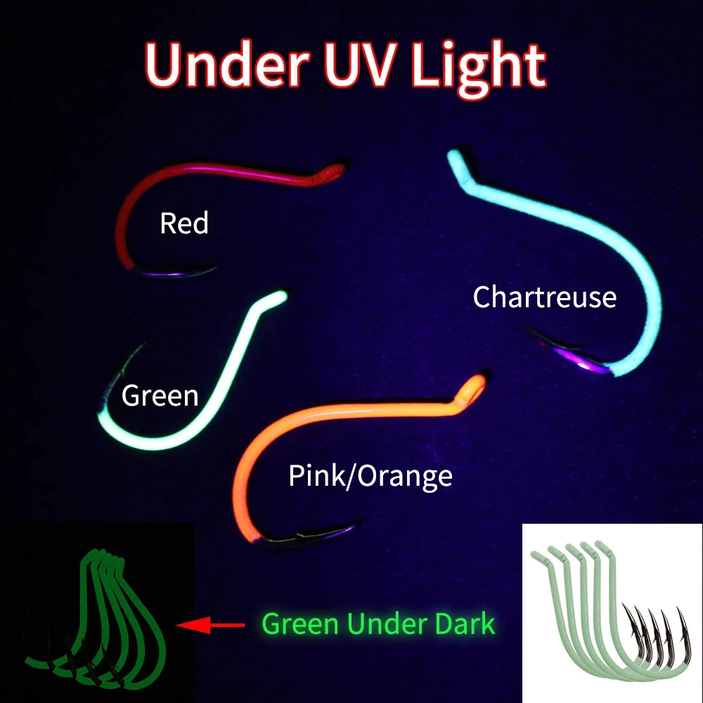 WIFREO Anzuelos de pesca luminosos de acero de alto carbono Fluorante UV Offset Pulpo Pico Cebo Agua salada Anzuelo Accesorios #10-#10/0