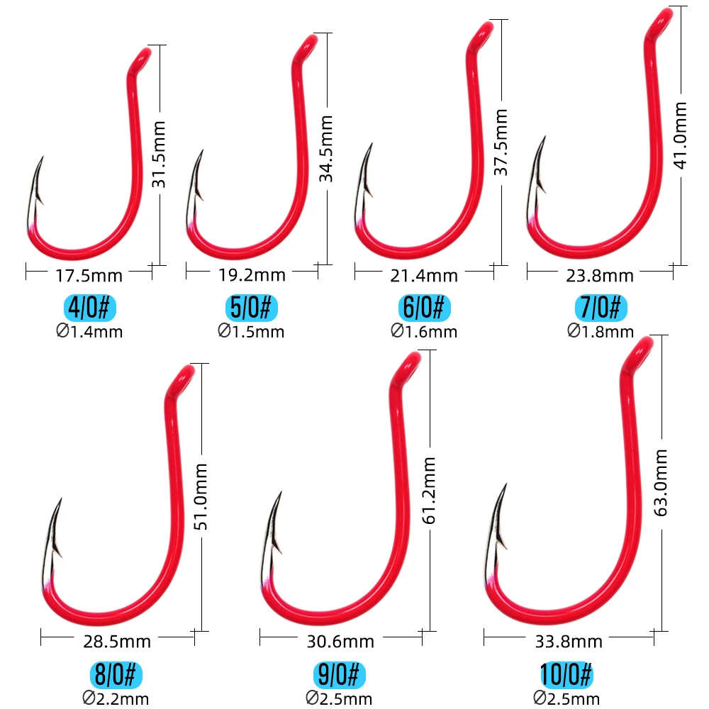 Tamaño: 10/0 #, 8/0 #, 7/0 #, 6/0 #, 5/0 #, 4/0 #, 3/0 #, 2/0 #, 1/0 #, 1 #, #2, 4 #, 6 #, 8 #, 10 #