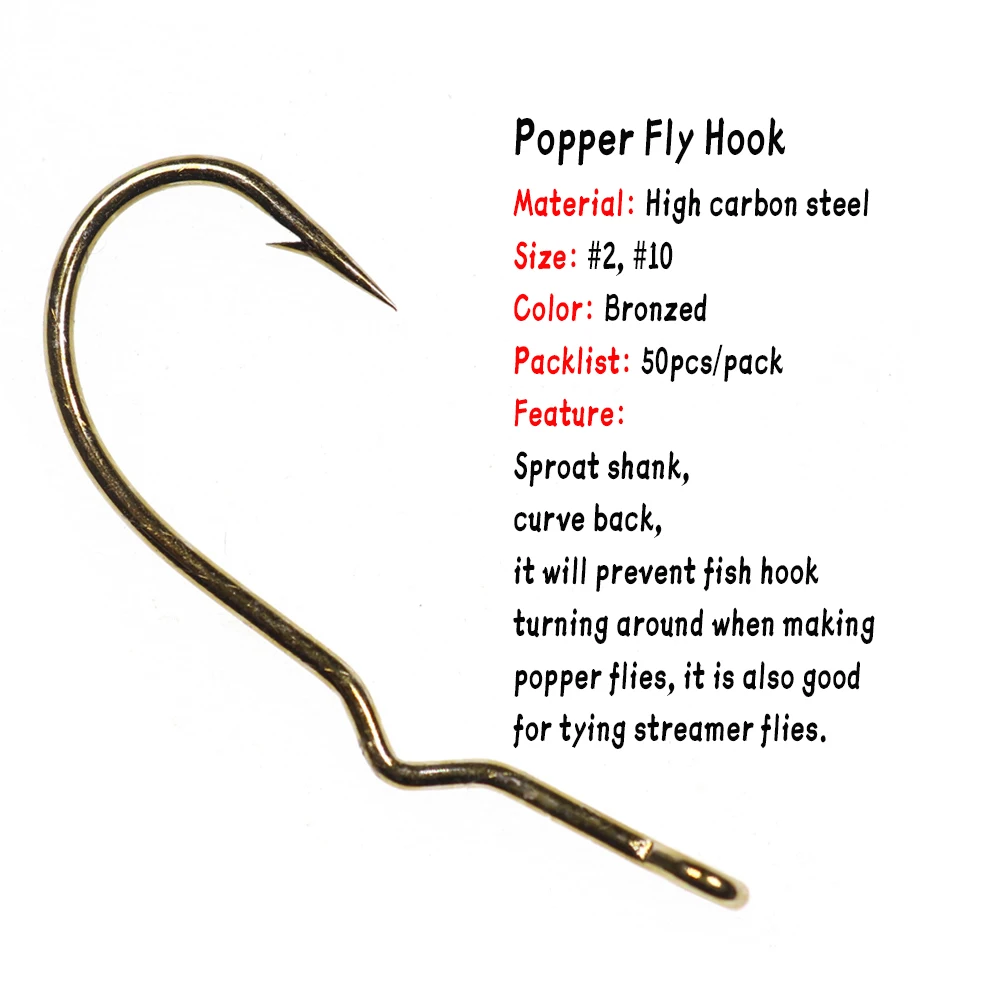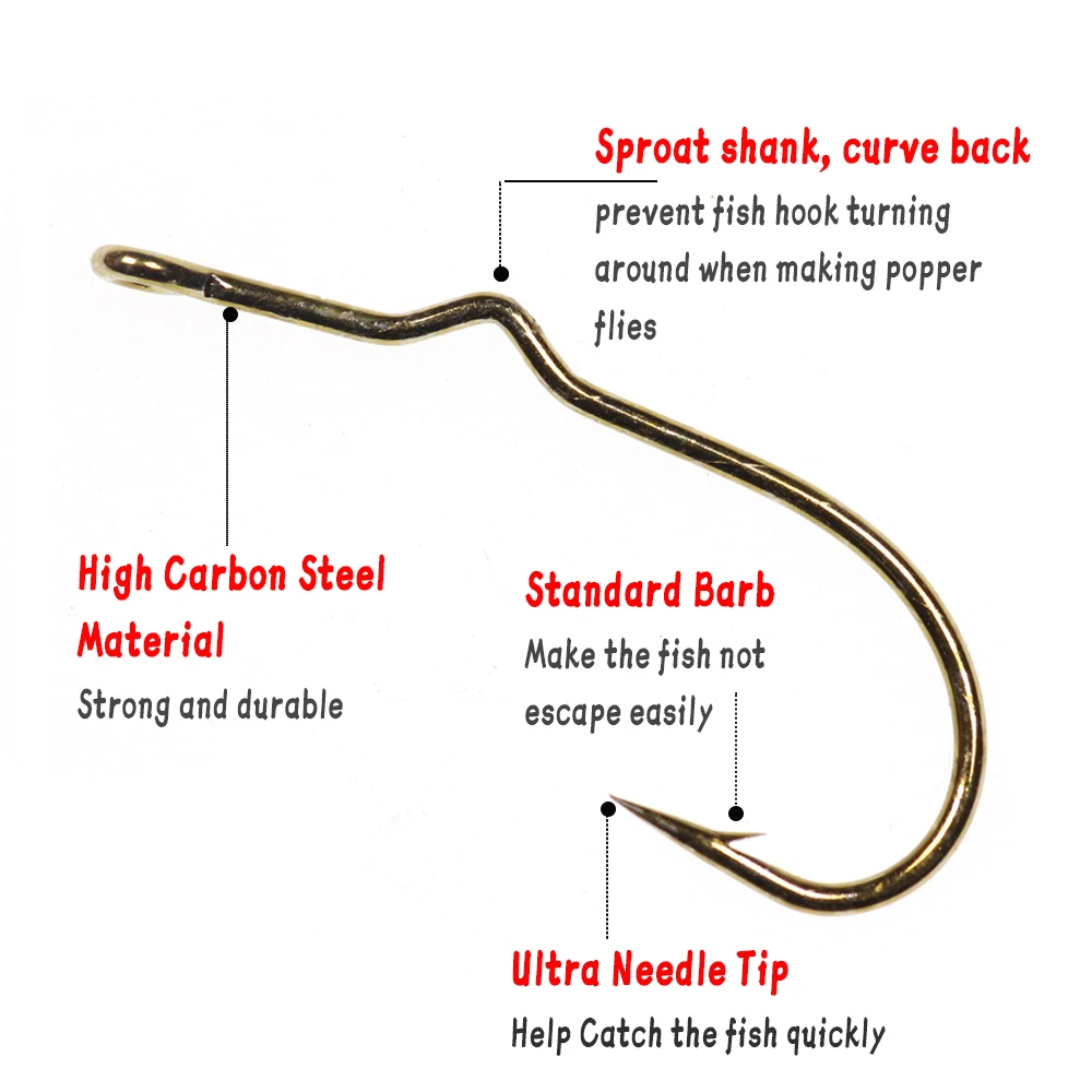 Característica: Vástago de brotación, espalda curva, evitará que el anzuelo se gire al hacer moscas popper, también es bueno para atar moscas de serpentinas.