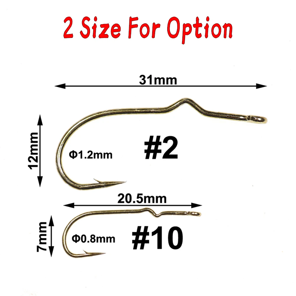 WIFREO 50 piezas#2#10 anzuelos para atar moscas con púas, vástago de brotación y anzuelo de caña larga, anzuelos para moscas con serpentinas