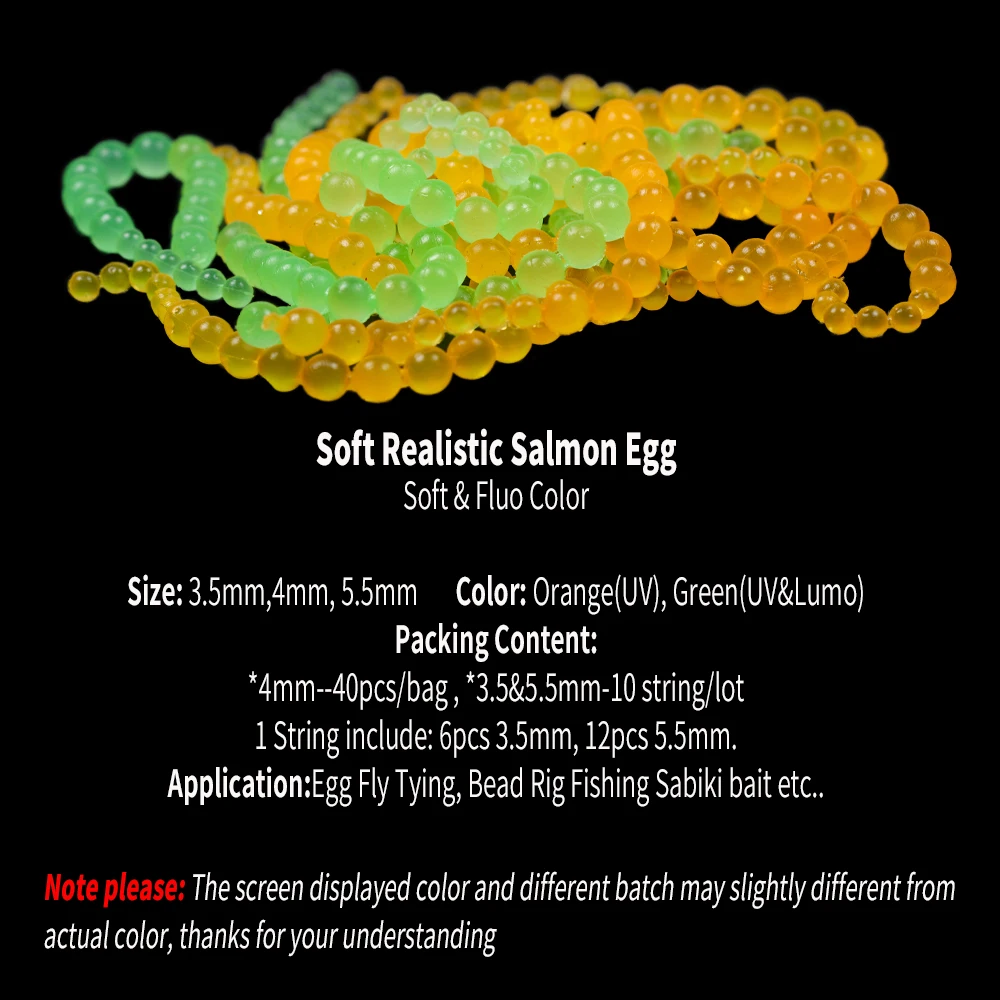 Wifreo 40 unids/bolsa huevo de salmón realista huevas elástico atado de moscas huevo mosca Glo Bug naranja rojo Chatreuse