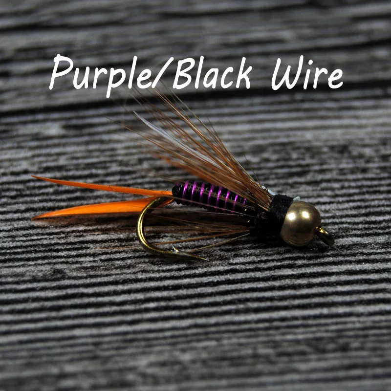Wifreo 12 piezas 12# Cabeza de cuentas de latón de hundimiento rápido Príncipe Ninfa Trucha Pesca Moscas Ninfa Stonefly Caddis Mosca