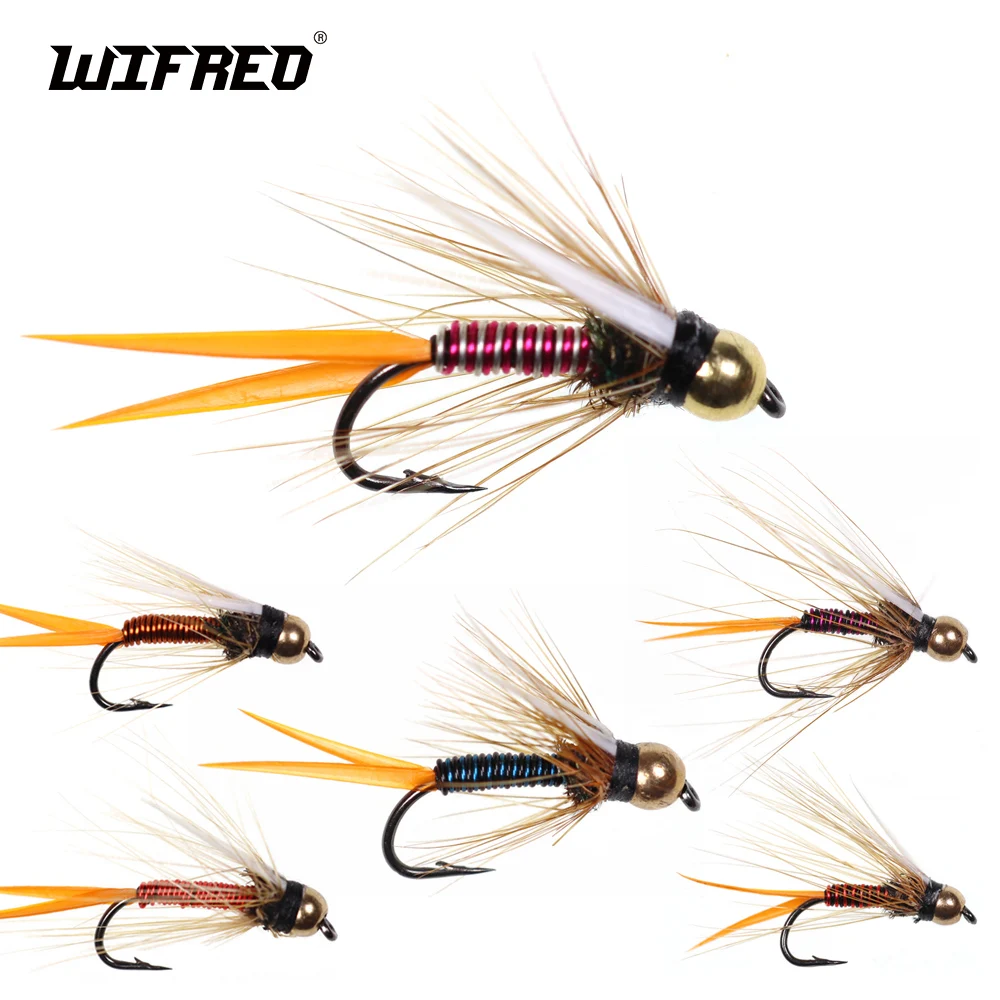 Wifreo 12 piezas 12# Cabeza de cuentas de latón de hundimiento rápido Príncipe Ninfa Trucha Pesca Moscas Ninfa Stonefly Caddis Mosca