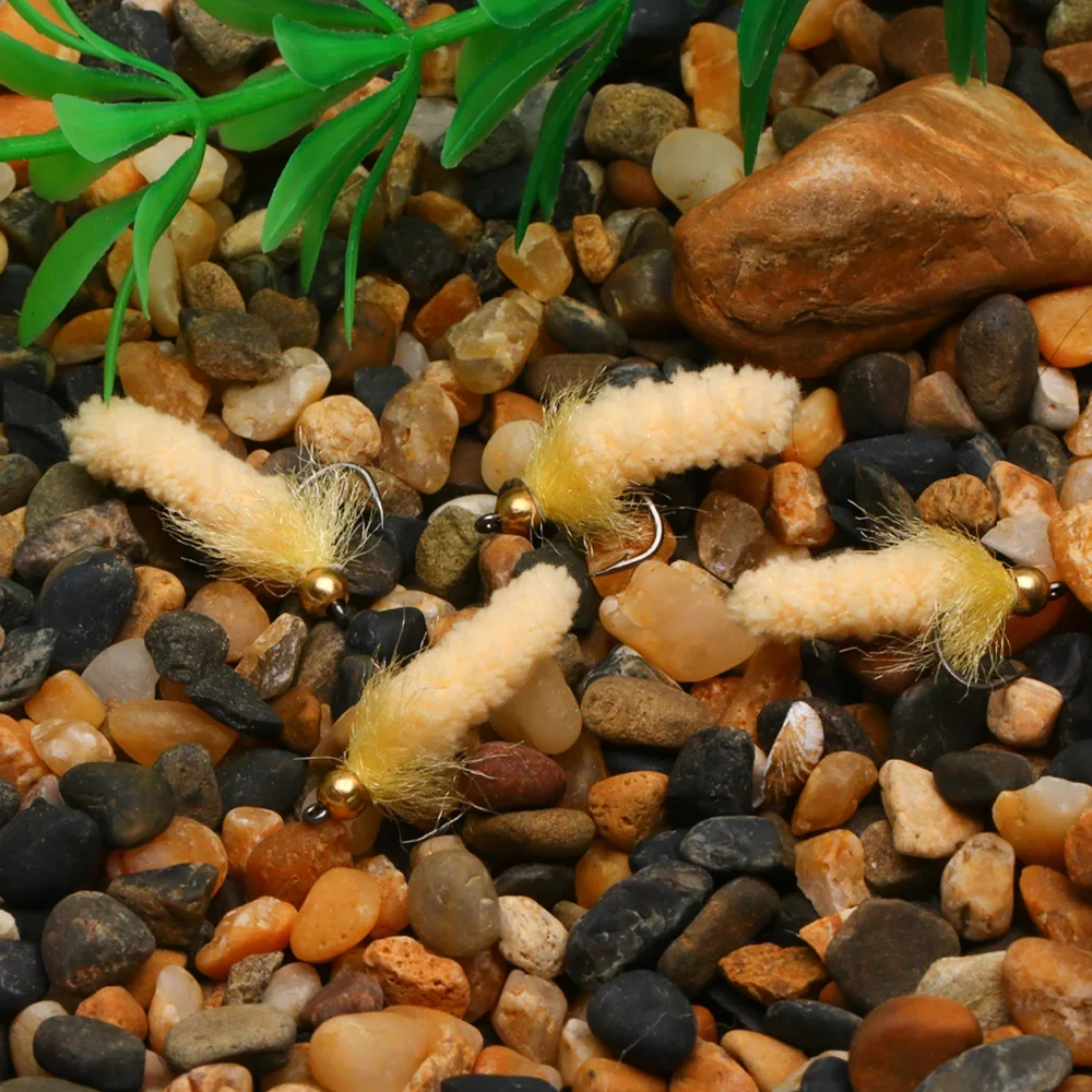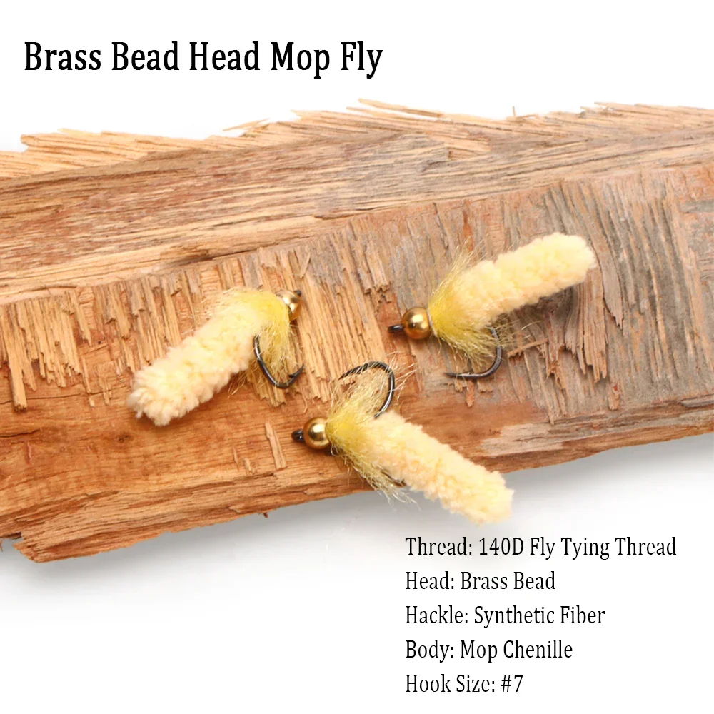 La mosca de la fregona imita a una larva o larva de insecto que se encuentra en un área húmeda en tierra o eclosionando en un cuerpo de agua. Las moscas de la fregona se pueden usar en cualquier momento durante la temporada de pesca. Son extremadamente productivos; especialmente durante aguas altas. El agua alta lava las larvas de la orilla, así como las larvas y gusanos en pulgadas que se encuentran durante los meses más cálidos. La "fregona" se utiliza para panfish, trucha y lubina, etc.