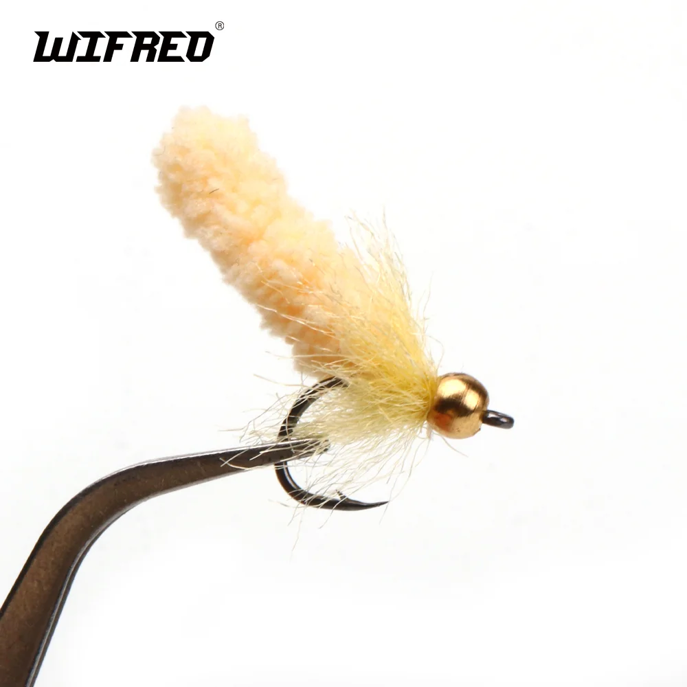 Wifreo-Mopa con cabeza de cuentas de latón, cebos para pesca con mosca, cuerpo de chenilla, larvas de grulla, ninfa húmeda, moscas, trucha, lubina, panfish