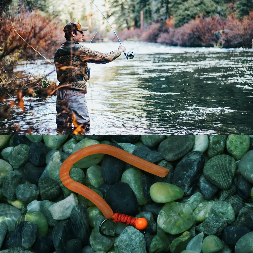Squirmy Wormy es el patrón de moscas moderno. Funciona especialmente en agua de color y después de lluvias más intensas. Cuenta con una cola de silicona muy suave que se mueve en el agua más rápido como el gusano real. Gran patrón de moscas para trucha marrón, trucha arcoíris, trucha de arroyo, carpa, cucaracha, etc.