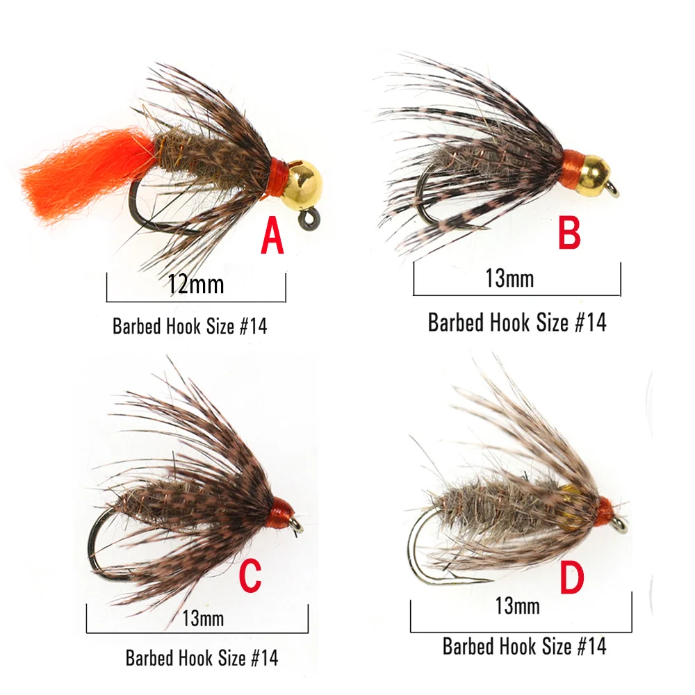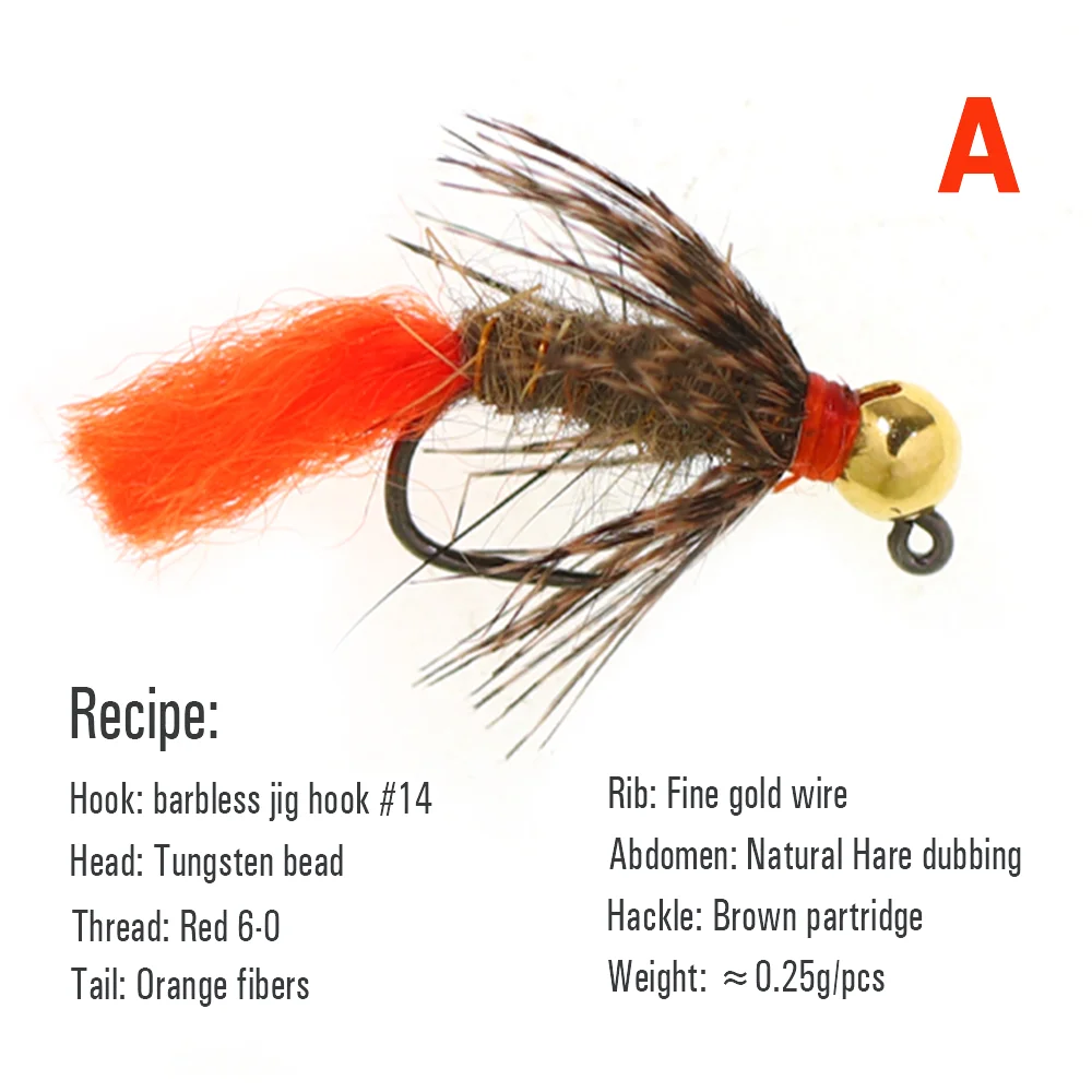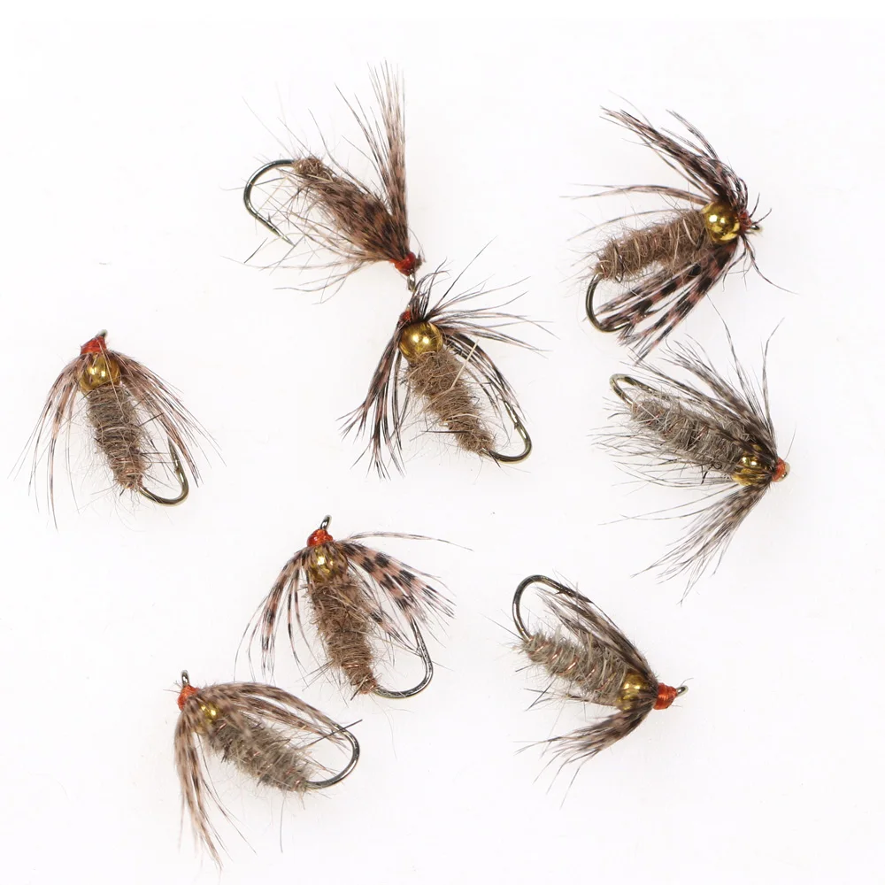 Wifreo Tungsten/Brass Bead Head Soft Hackle Hare’s-Ear Fly Mayfly Emerger Nymph Trout Fishing Fly Lure Bait Size #14