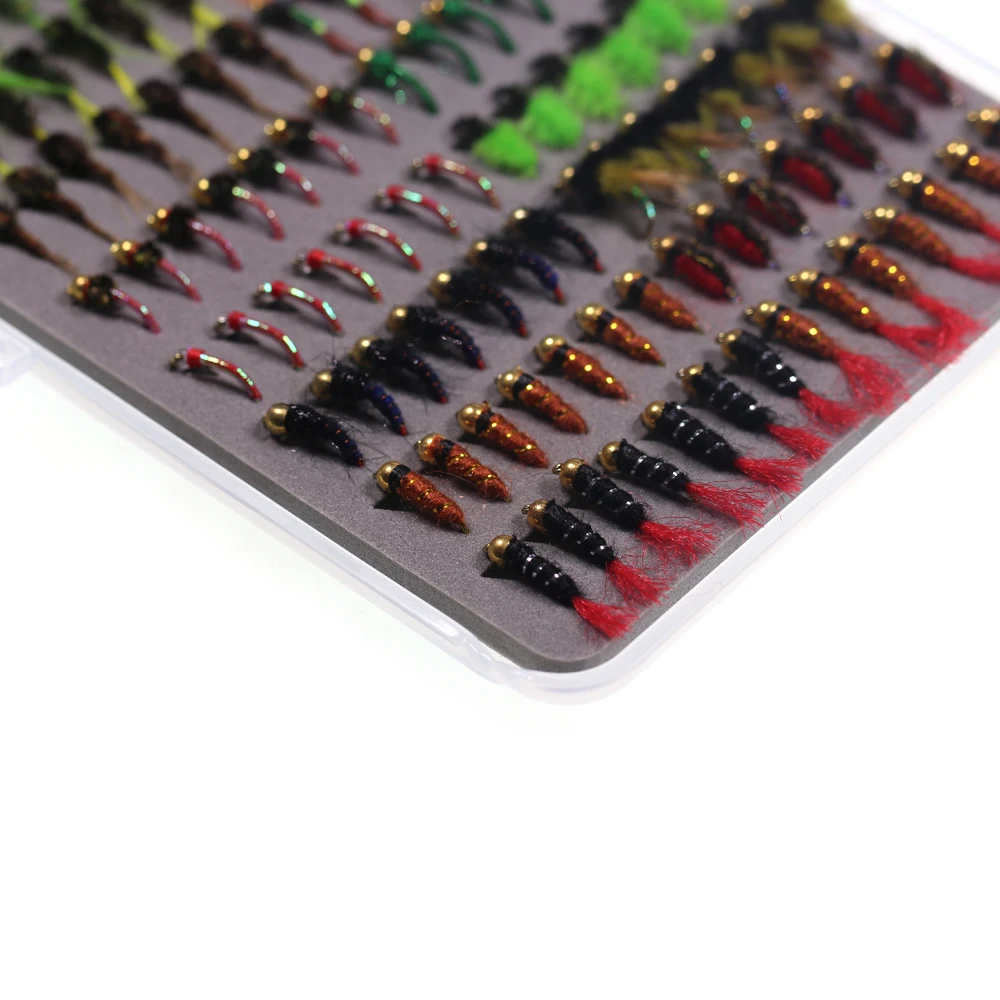 Wifreo 147, caja de señuelos de pesca con mosca Scud Nymph Wet, juego de cabeza de cuentas, ninfa Midge, larvas, trucha, Grayling, Panfish, señuelo, cebo