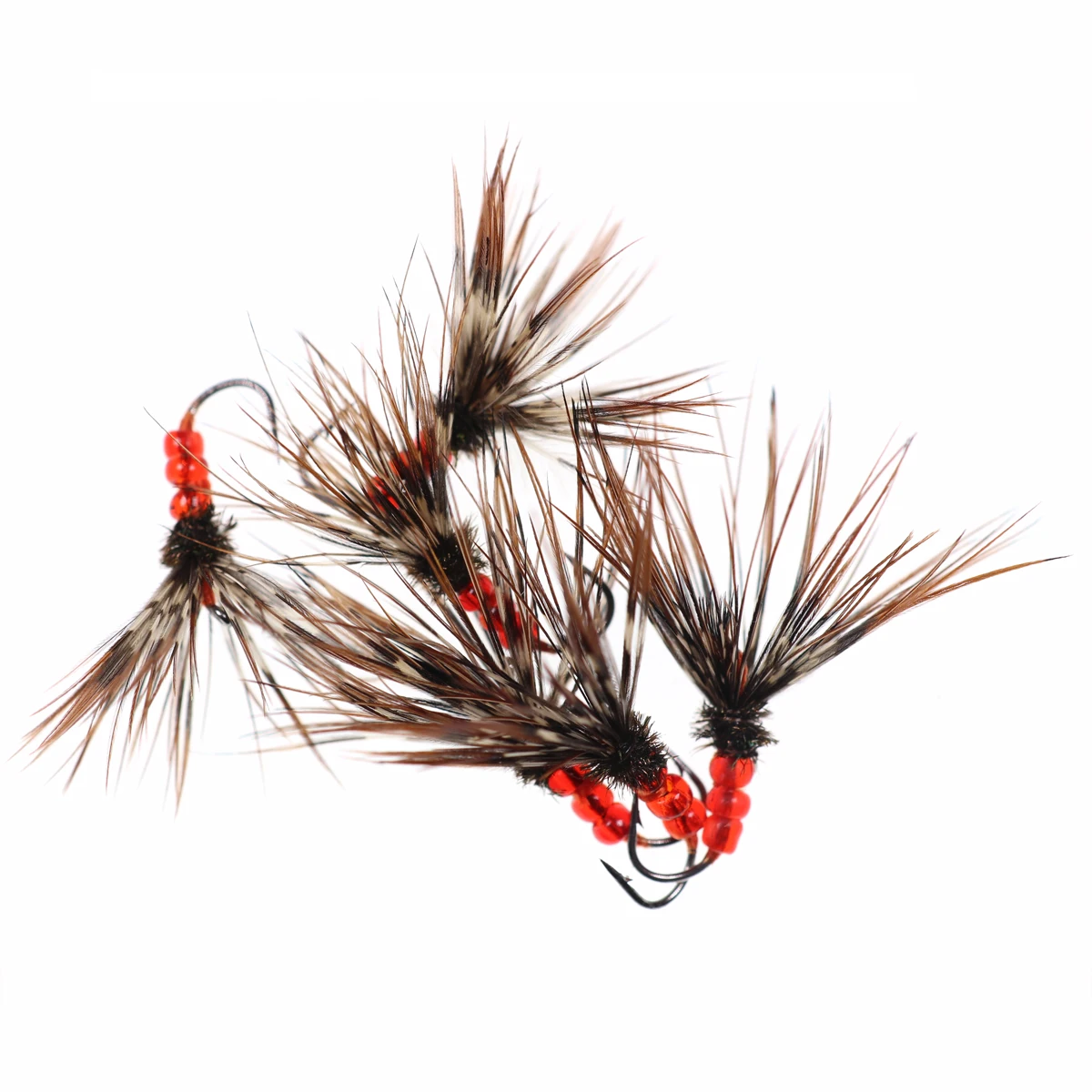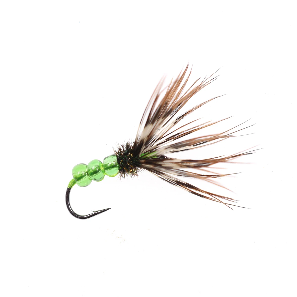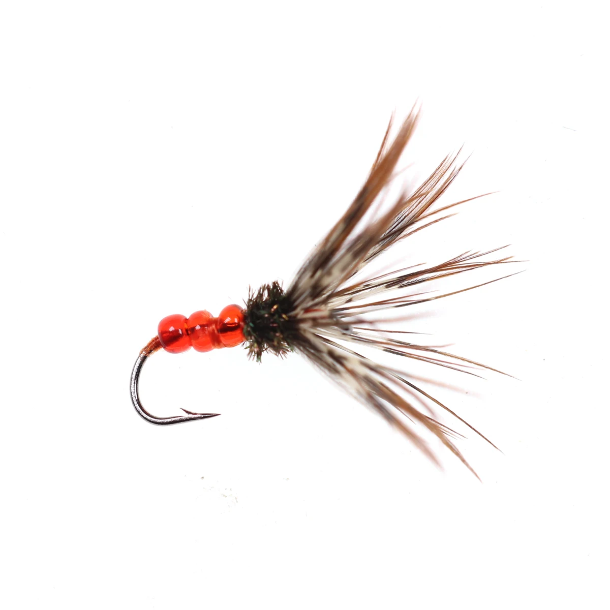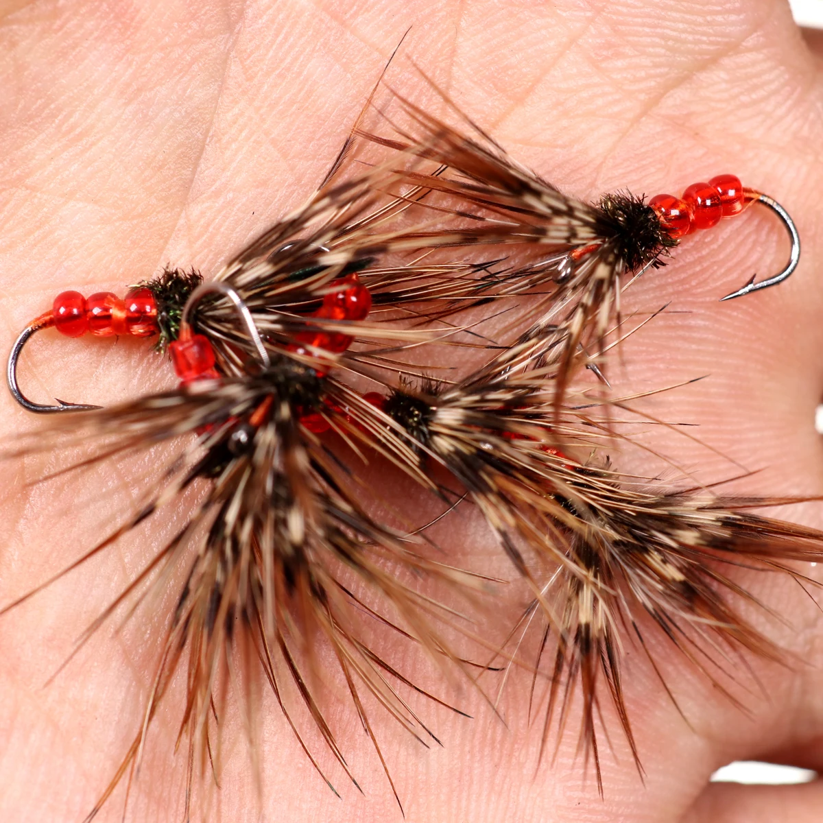 Wifreo 6PCS#12 patrones de moscas Tenkara para trucha arcoíris nativa, lubina y panfish, moscas, cebo para insectos con cuerpo de cuentas de plástico