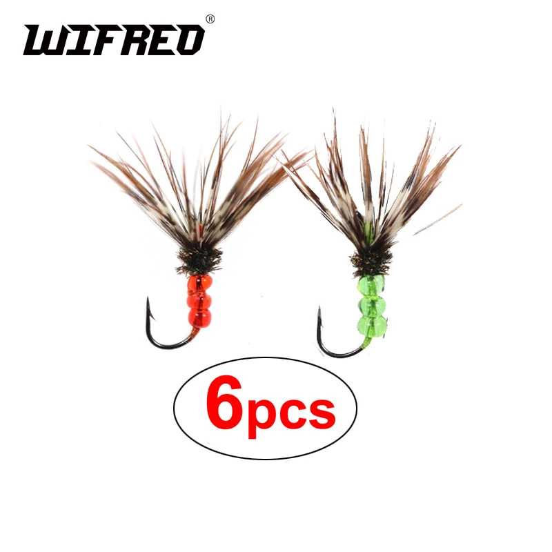 Wifreo 6PCS#12 patrones de moscas Tenkara para trucha arcoíris nativa, lubina y panfish, moscas, cebo para insectos con cuerpo de cuentas de plástico