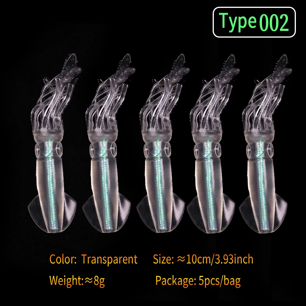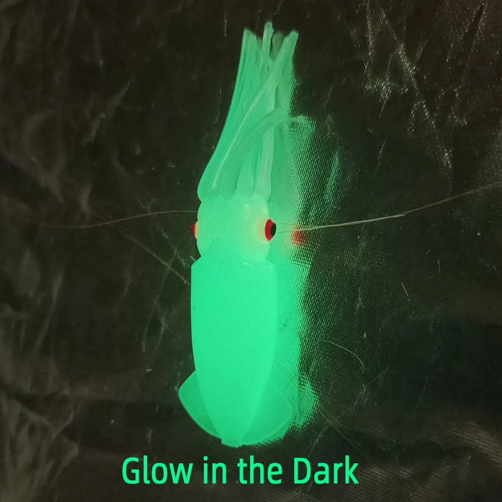 Característica: el señuelo de calamar suave transparente con tubo holográfico que cambia de color será más atractivo para los peces. Ideal señuelo de pesca de arrastre de barco de agua salada.