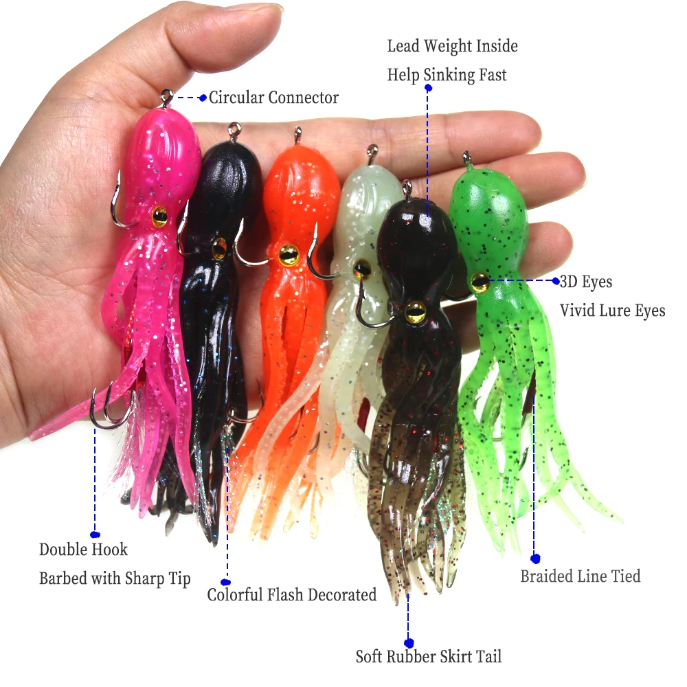Tipo: señuelo de pesca de falda de pulpo luminoso suave