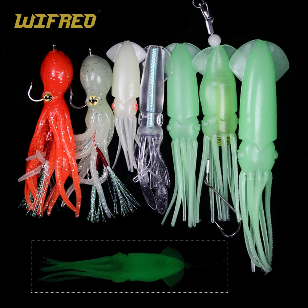 WIFREO señuelo de calamar suave resplandor señuelo de Pesca de Mar señuelo de pulpo luminoso cebo artificial Wobblers LED calamar Jig Light