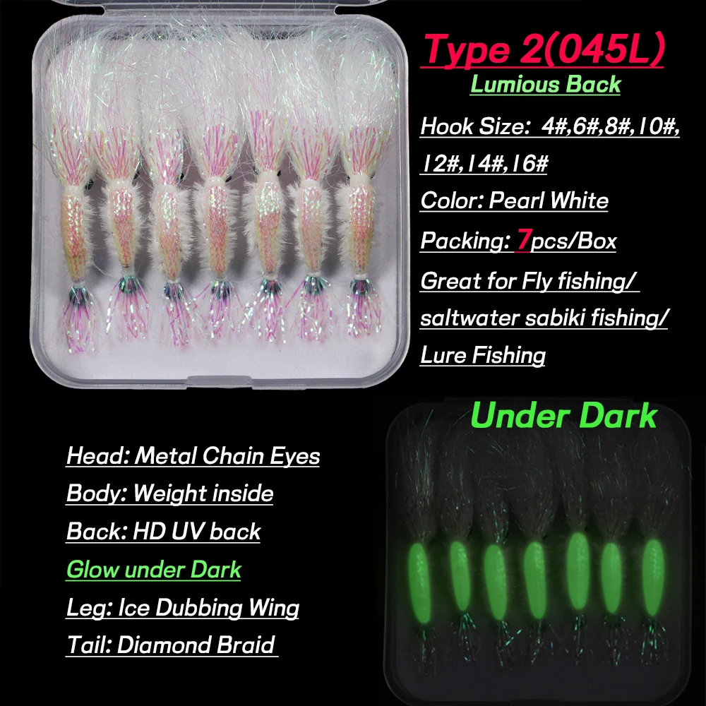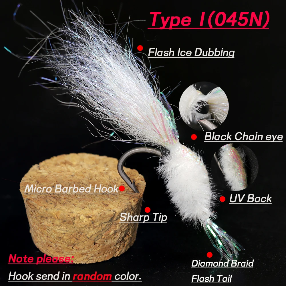 WIFREO #2-#10 camarones de ala de hielo Flash volando cebos artificiales para trucha lumiosa pesca en agua salada mosca pesca camarones señuelo cebo