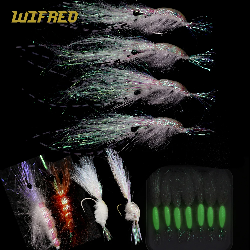 WIFREO #2-#10 camarones de ala de hielo Flash volando cebos artificiales para trucha lumiosa pesca en agua salada mosca pesca camarones señuelo cebo