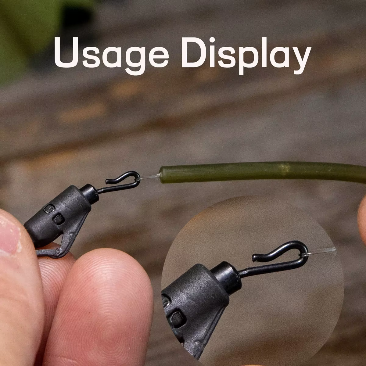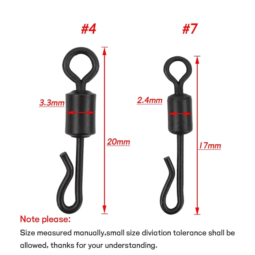 Los eslabones de cambio rápido (también llamados eslabones de cambio Kwik) permiten a los pescadores cambiar enlaces de gancho o vara PVA rápidamente. Úsalo junto con las mangas antienredos. Simplemente enganche el gancho y deslice la funda antienredo sobre el clip para asegurar.