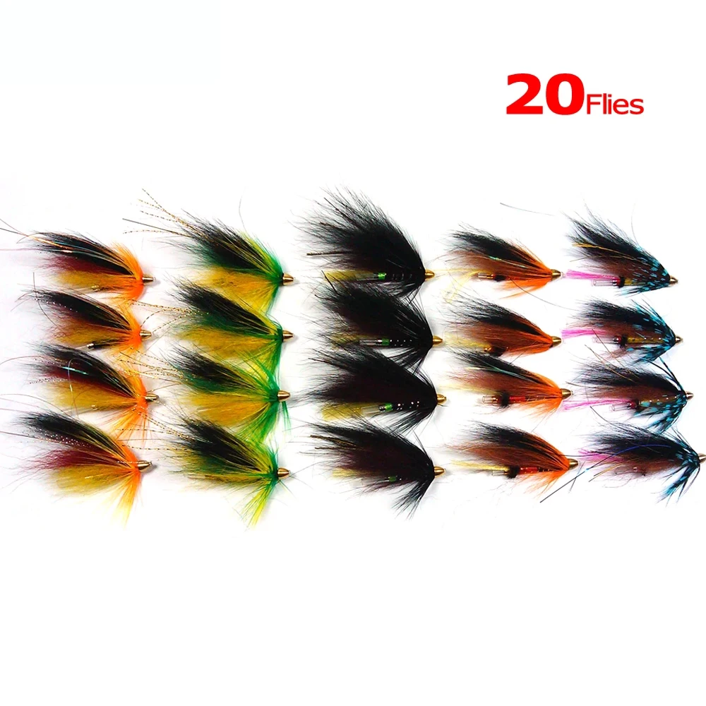 Wifreo [20PCS] Color surtido Salmón Steelhead Pesca Tubo Fly Combo Sea Bass Teasers Azul Naranja Negro Verde Color
