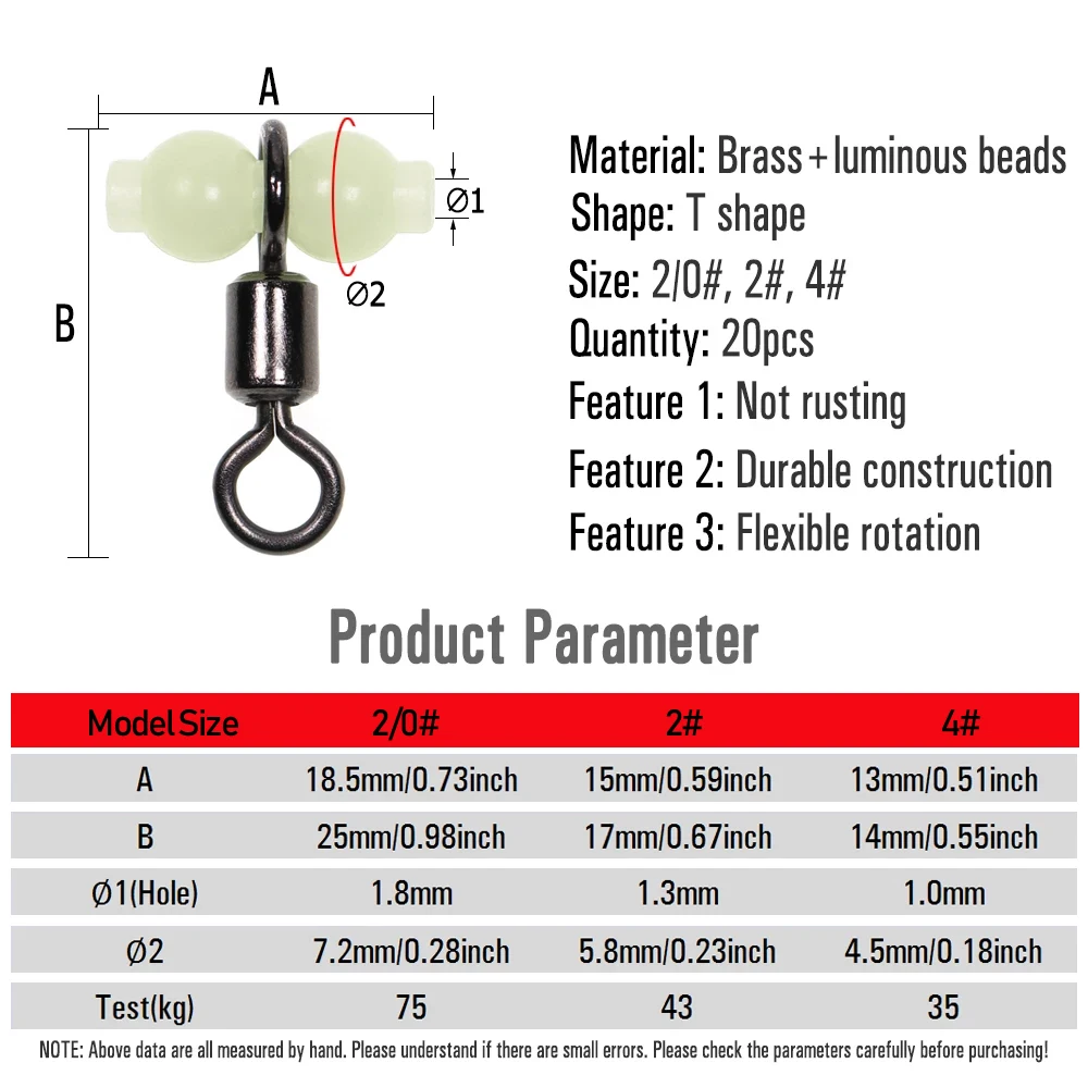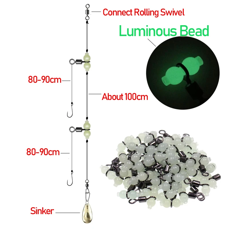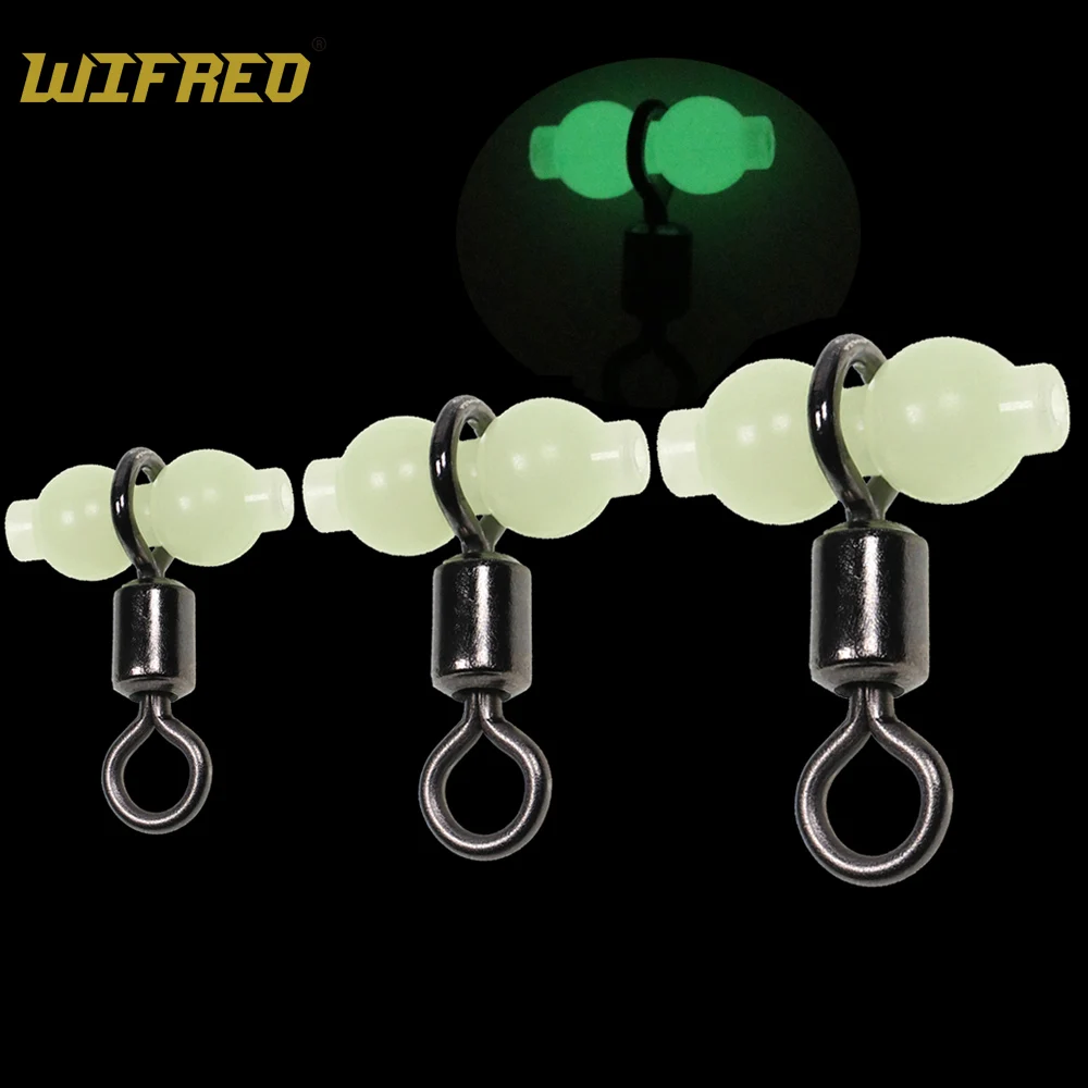 Wifreo 40 piezas conector giratorio de pesca luminoso de 3 vías, barril rodante, cuentas fluorescentes, gancho de pesca, Conector de línea de señuelo