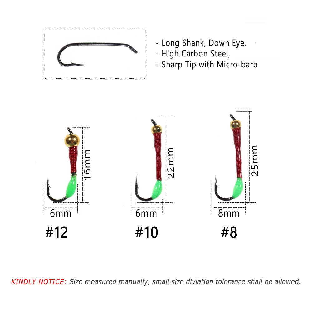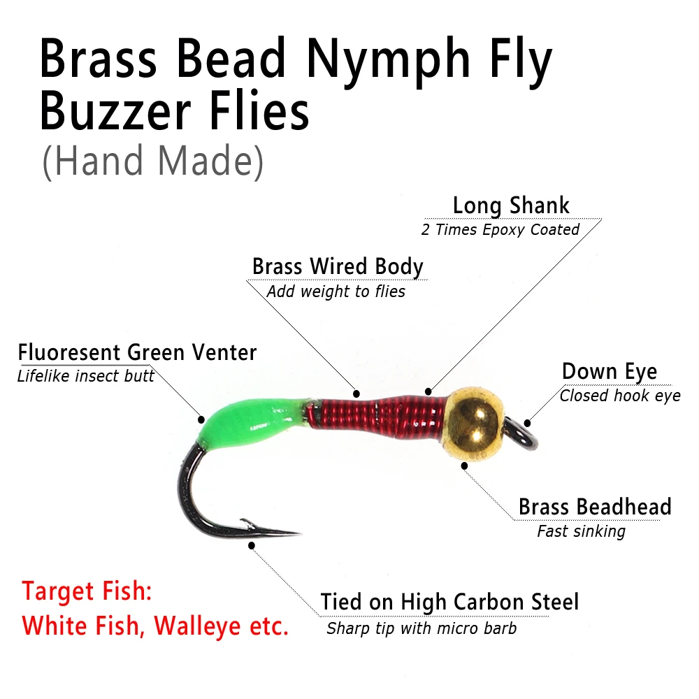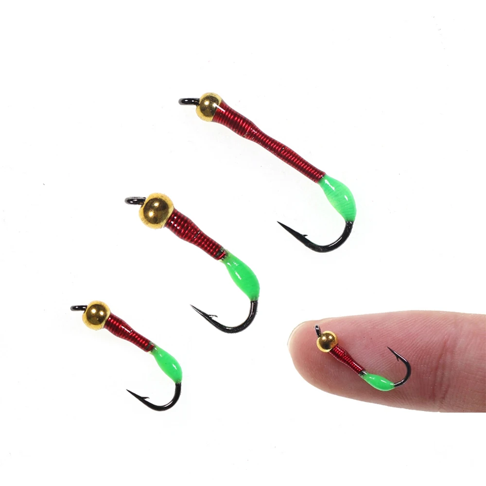 Wifreo 6 piezas cuenta de latón epoxi Nymph Fly Buzzer vuela alambre gusanos trucha pescado blanco Walleye mosca pesca de hielo señuelos cebo hundimiento rápido