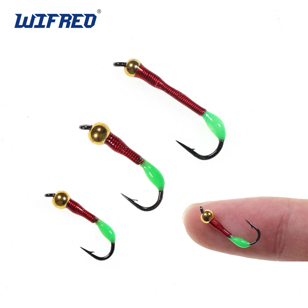 Wifreo 6 piezas cuenta de latón epoxi Nymph Fly Buzzer vuela alambre gusanos trucha pescado blanco Walleye mosca pesca de hielo señuelos cebo hundimiento rápido