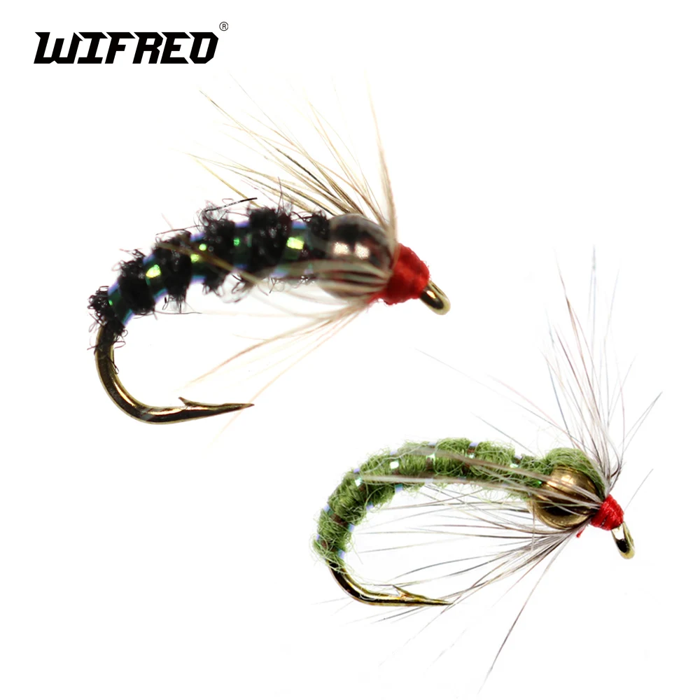 Wifreo-cuenta de tungsteno Caddis, cabeza de cuentas de latón metálico, ninfa Premium, arcoíris, trucha marrón, magra, Char, pesca, moscas, oliva negra