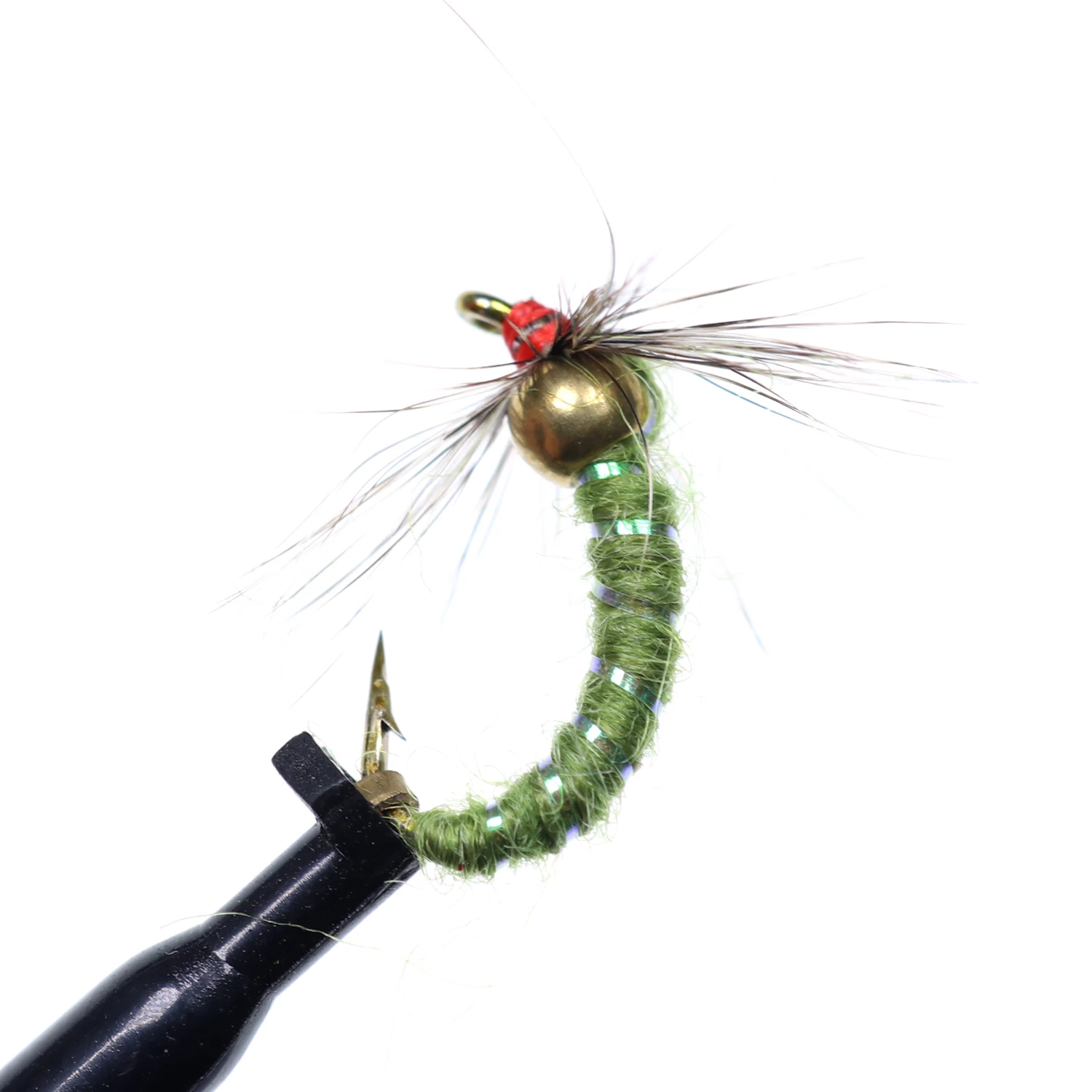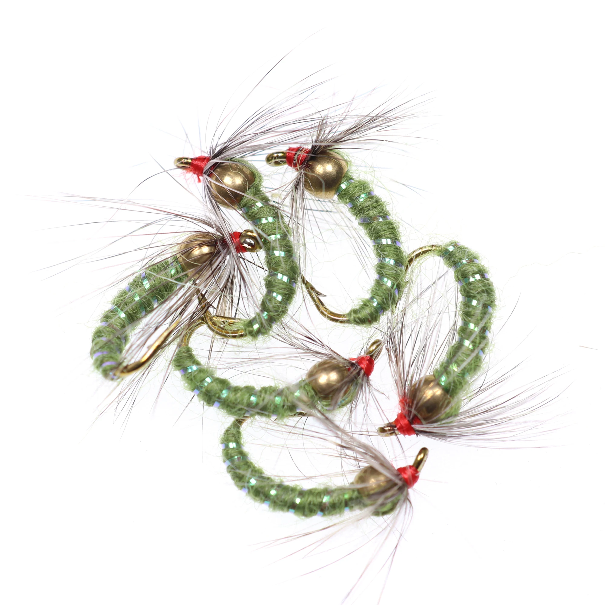 Caddis Cabeza de cuentas de tungsteno metálico y cabeza de cuentas de latón Ninfa moscas premium