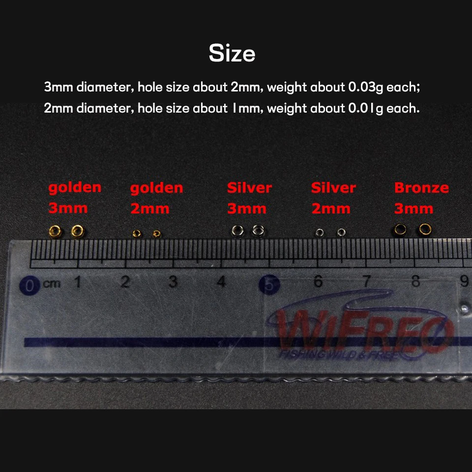 Diámetro de 3mm, tamaño del orificio de aproximadamente 2mm, peso de aproximadamente 0,03g cada uno;