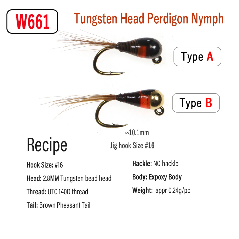 WIFREO 6 uds cabeza de cuentas de tungsteno Perdigon Nymph Expoxy cuerpo mosca húmeda arcoíris marrón trucha Grayling trucha arrojo pesca fregadero rápido mosca