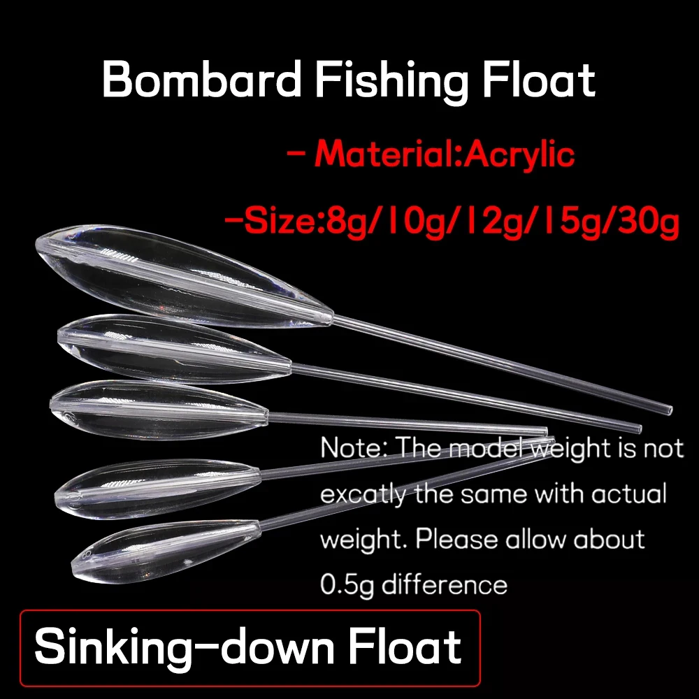 Wifreo acrílico Bombarda flotador Micro cebo pesca herramienta de lanzamiento de mosca Micro señuelo flotador de lanzamiento para pesca con mosca uso varilla giratoria