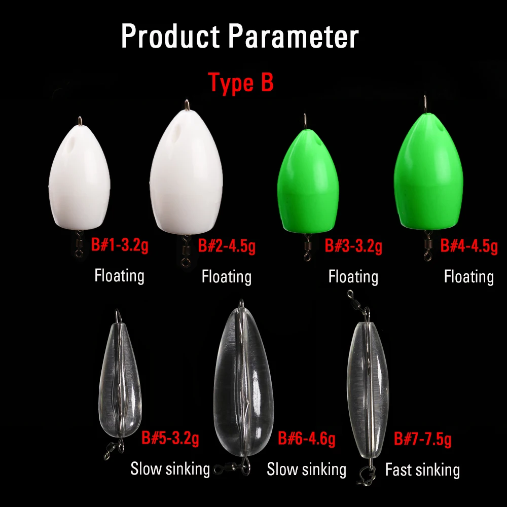 Mosca de pesca de plástico/micro señuelo fundido Bombarda flotador, herramienta de rodadura