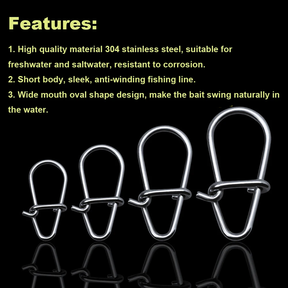 Wifreo, 50 Uds., gancho de acero inoxidable, cierre de Clip rápido, gancho de pesca giratorio, accesorios de conector, anillos sólidos, broches de seguridad