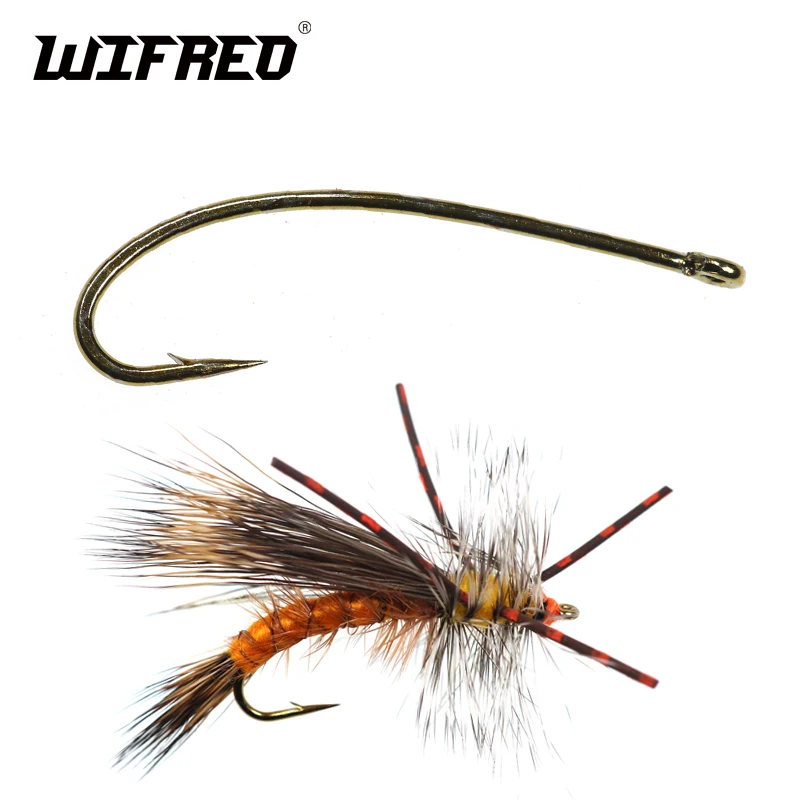 Wifreo 50PCS 3XL Long Shank Curved Nymph Fly Hook Terrestrial Dry Fly Hook for Stimulator Flies Stonefly Nymph Hook