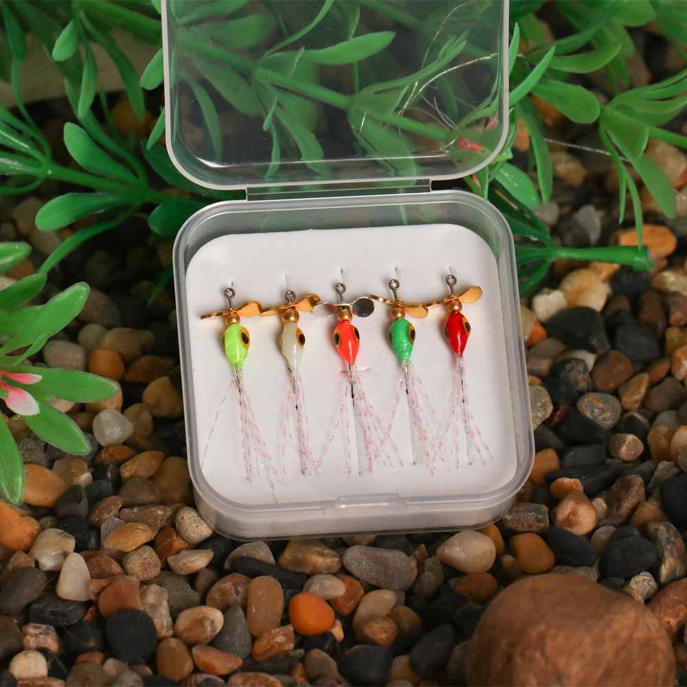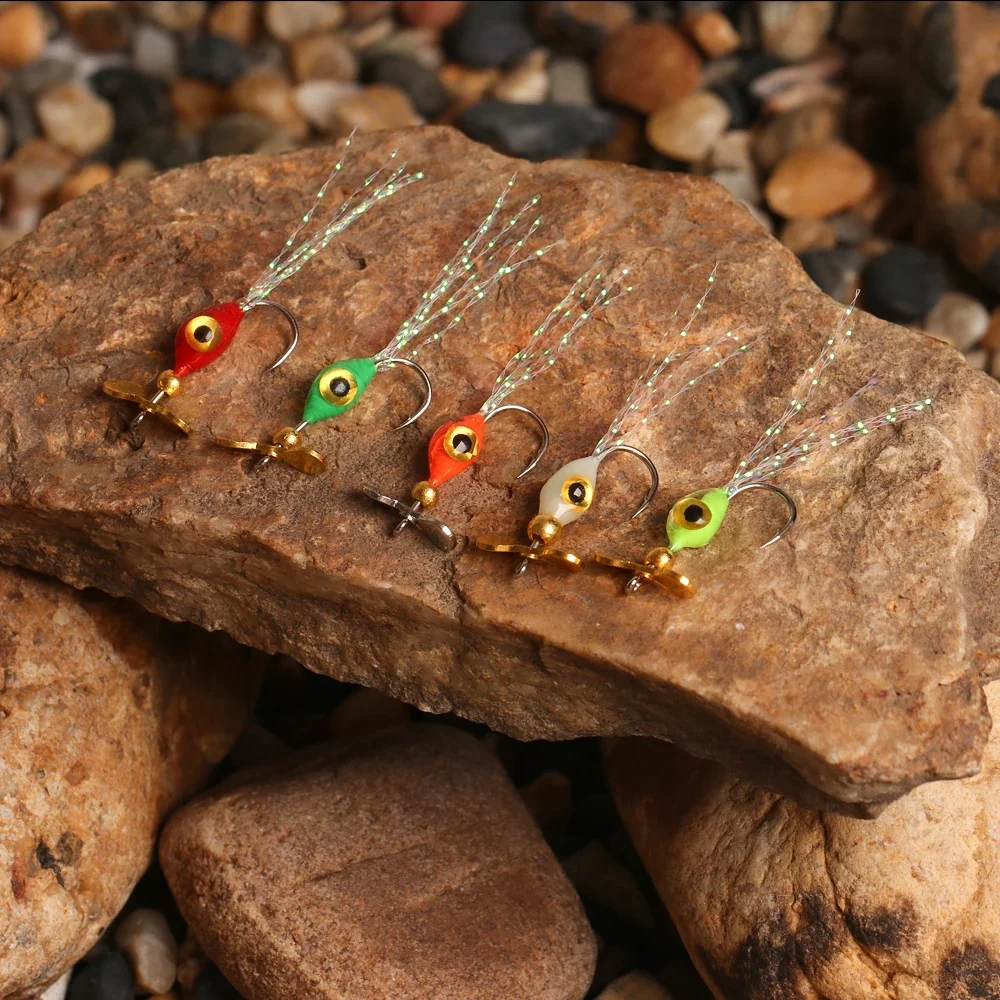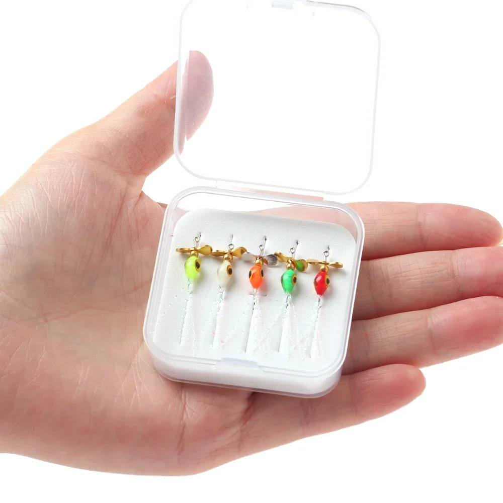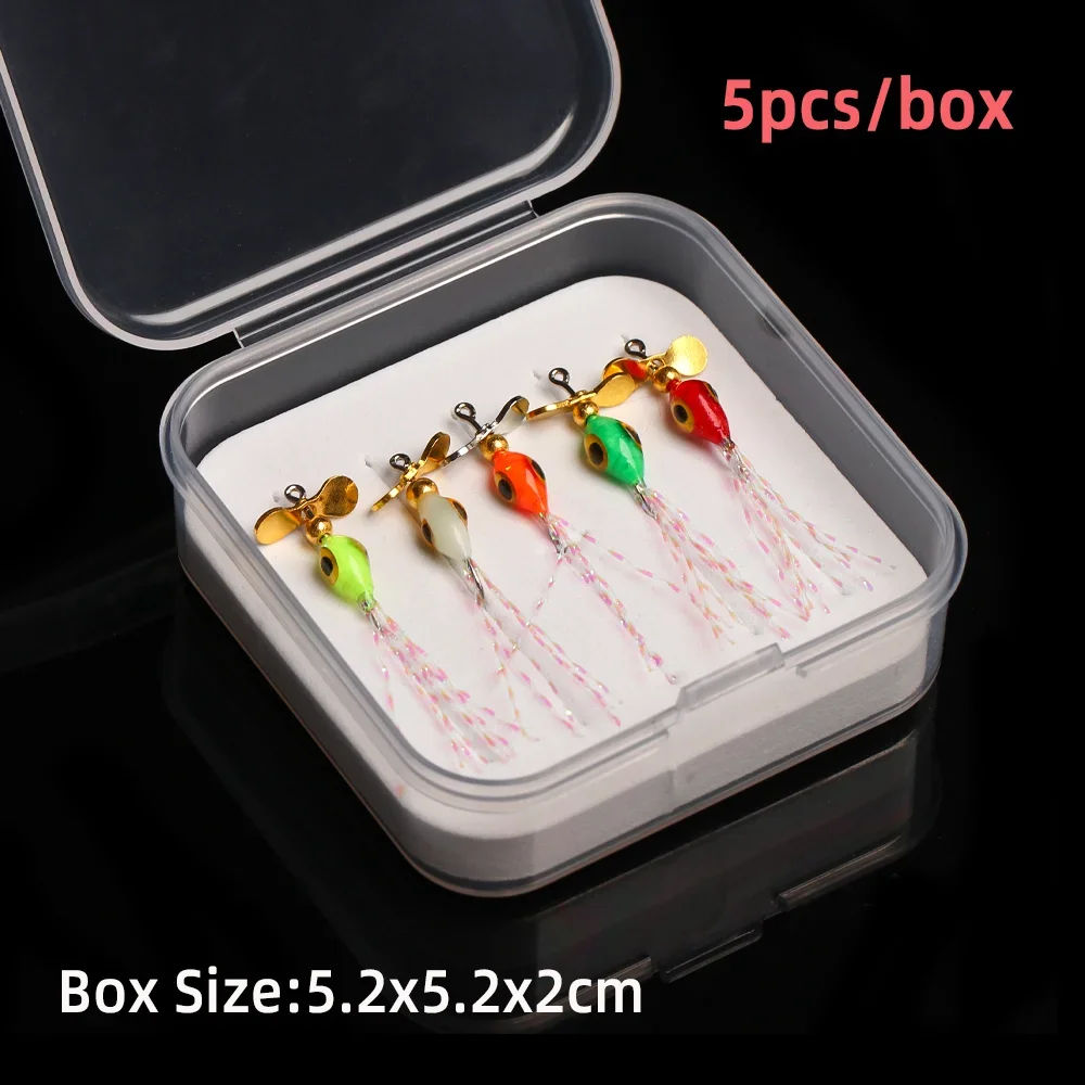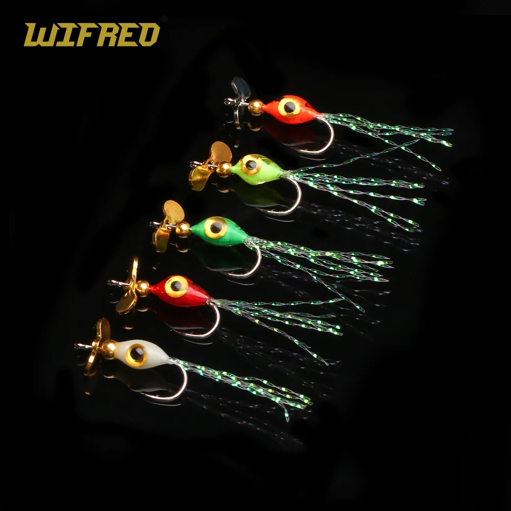 Wifreo 5 unids/caja hélice de pesca con mosca lentejuelas cebo para mosca epoxi Ninfa mosca Metal Spinner Señuelos de Pesca trucha lubina Señuelos de Pesca cebos