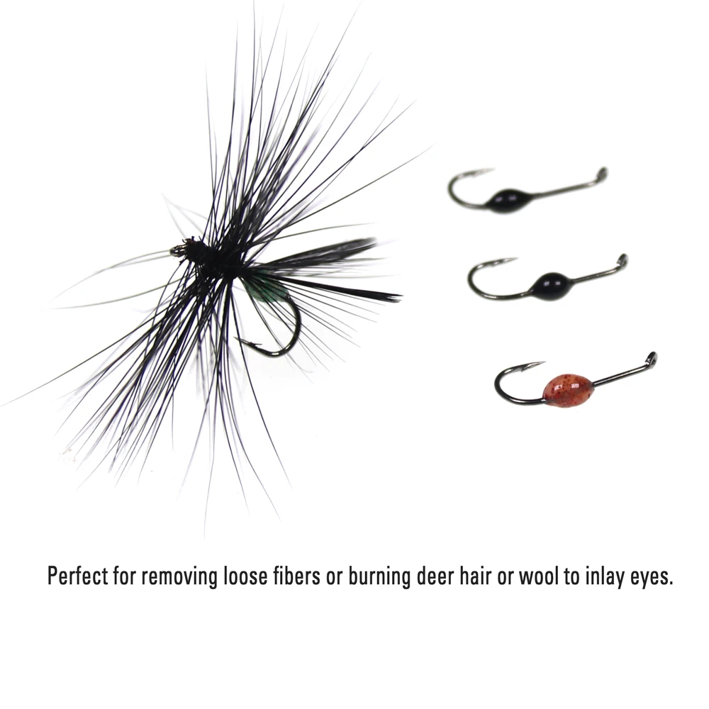 Perfecto para eliminar fibras sueltas o quemar pelo de ciervo o lana para incrustaciones de ojos.