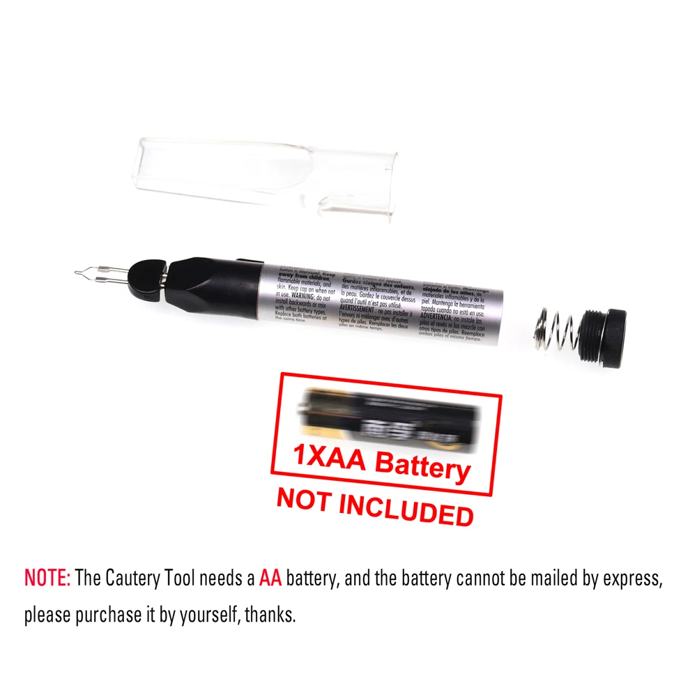 NOTA: la herramienta de cauterización necesita una batería AA, y la batería no se puede enviar por correo urgente, cómprela usted mismo