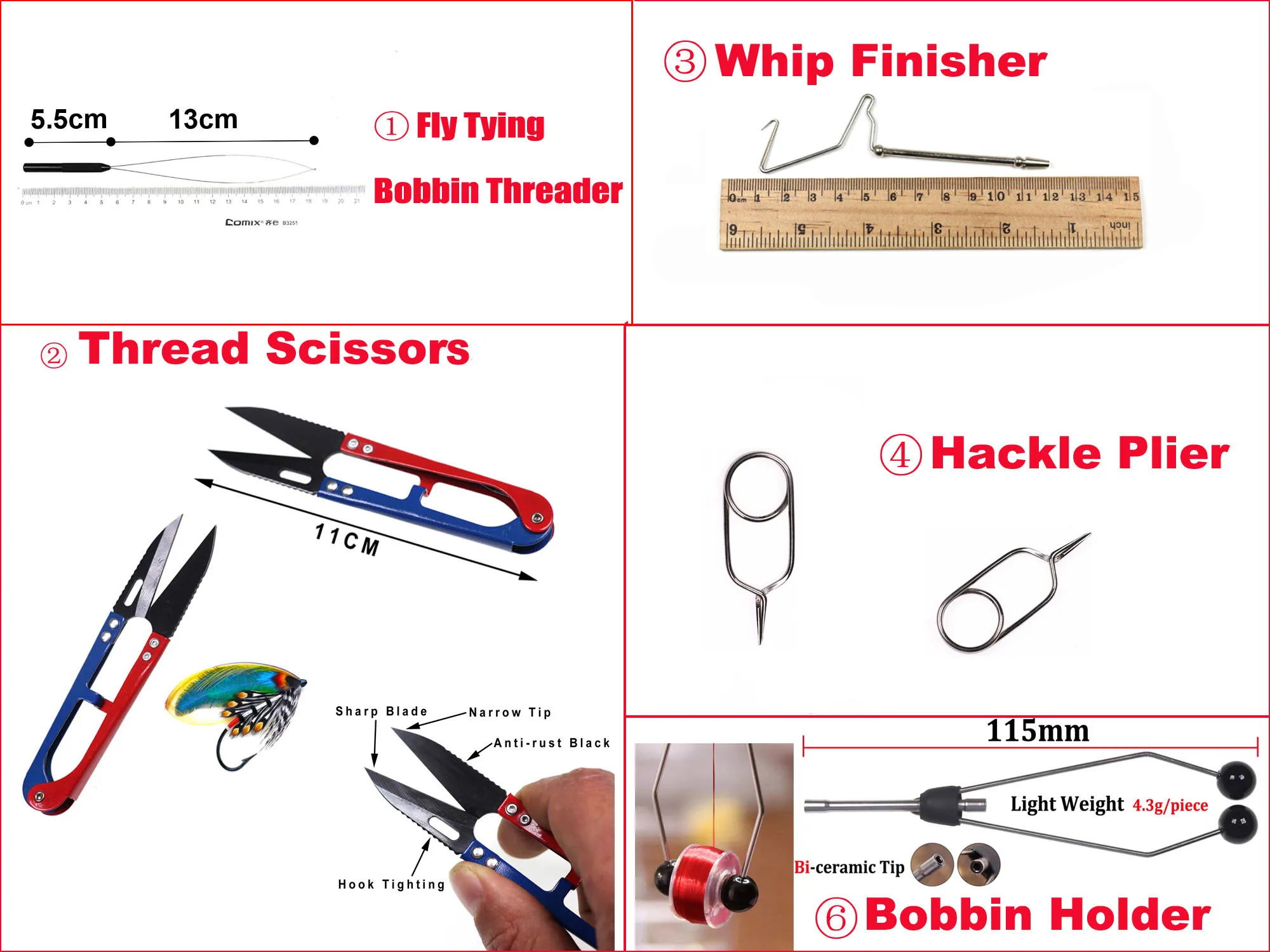 -Tornillo de banco para atado de moscas * 1 ud. + Herramienta para atar moscas * 6 + Hilo para atado de moscas * 12 piezas