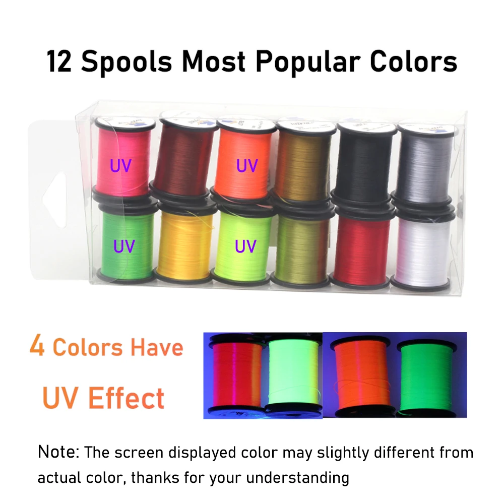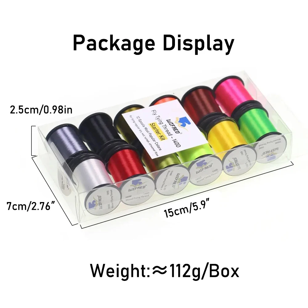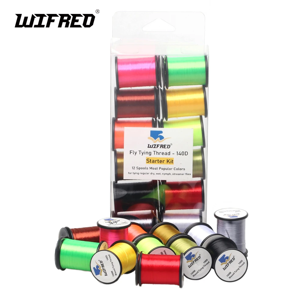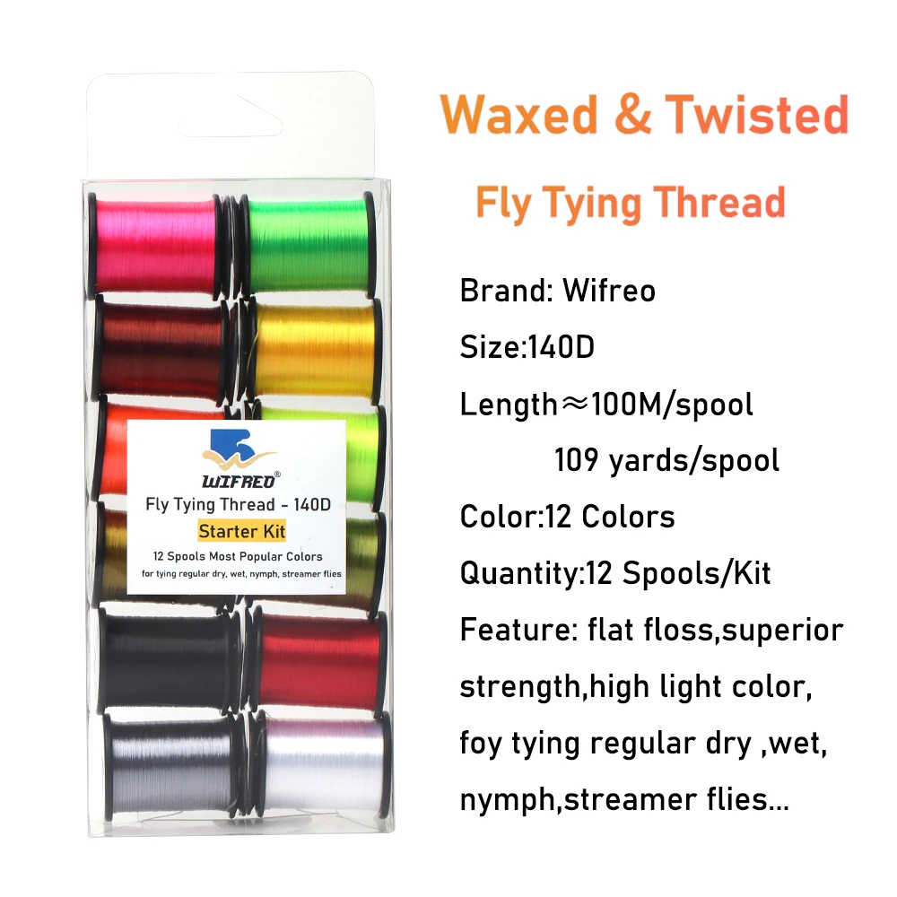 Wifreo 12 Colores/juego 140D encerado y retorcido hilo para atar moscas, Material de atado de pesca con mosca para moscas secas y húmedas, ninfas, serpentinas, señuelo