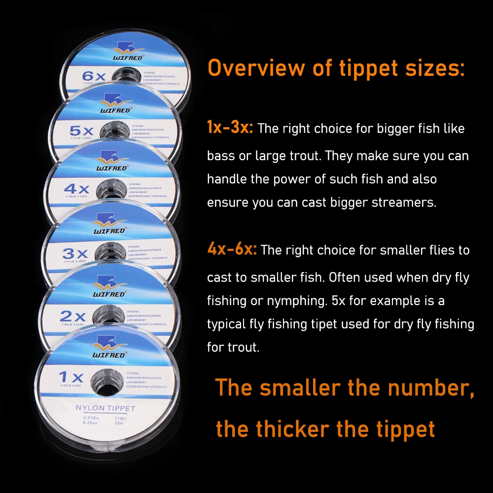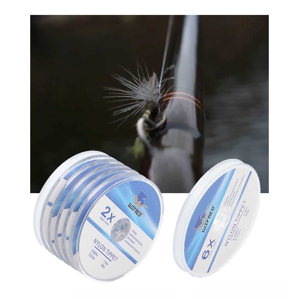 Wifreo 1X - 6X 110ft/rollo pesca con mosca nailon Tippet línea monofilamento transparente Tippet soporte de carrete trucha lubina aparejos de pesca