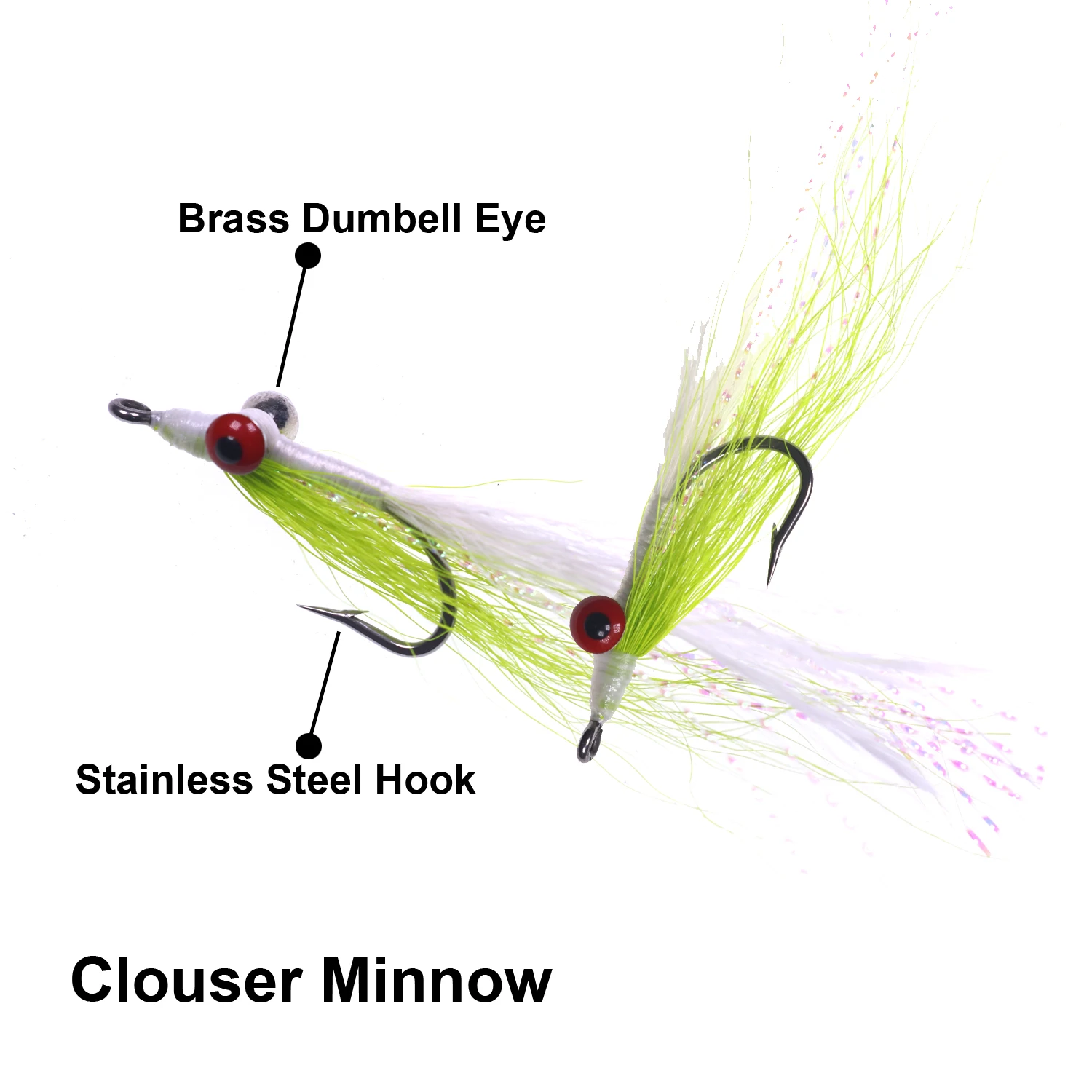 * Los ojos de las mancuernas dan a la mosca un movimiento jigging cuando se recuperan e invierten la mosca para que no se enganche en la parte inferior como otros patrones muy pesados.