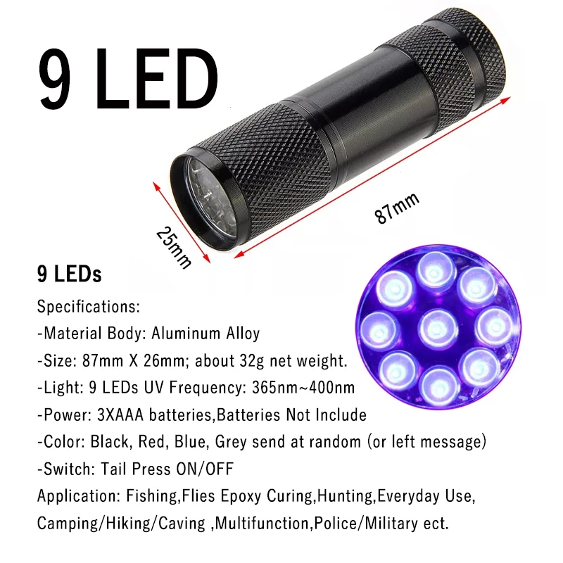 -Luz: 9 LED Frecuencia UV: 365nm ~ 400nm